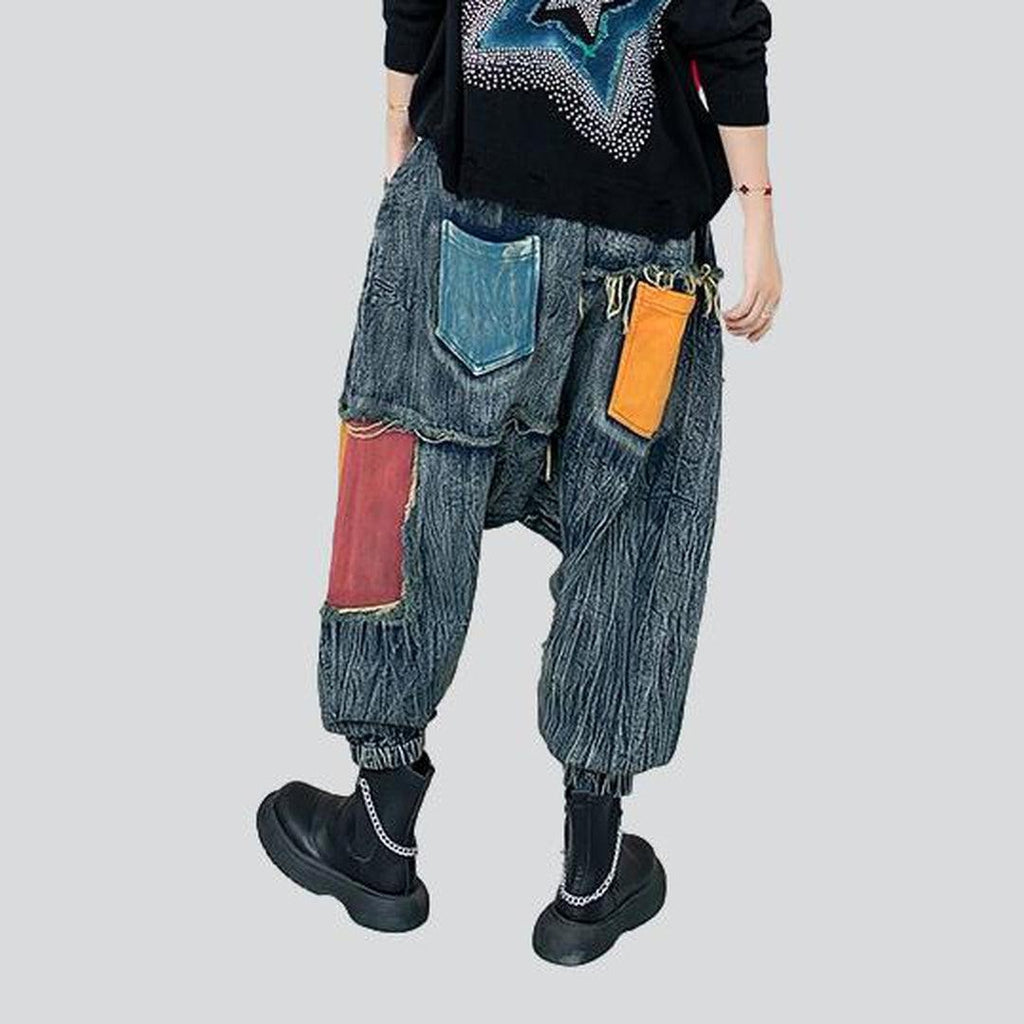 Step into the spotlight this season with our patchwork women's denim pants from the 2023 Spring-Summer Collection! Our vogue-forward pants boast a baggy fit and a high-waist for a timelessly stylish look. Constructed with drawstrings closure. these pants offer effortless versatility and unique flair.