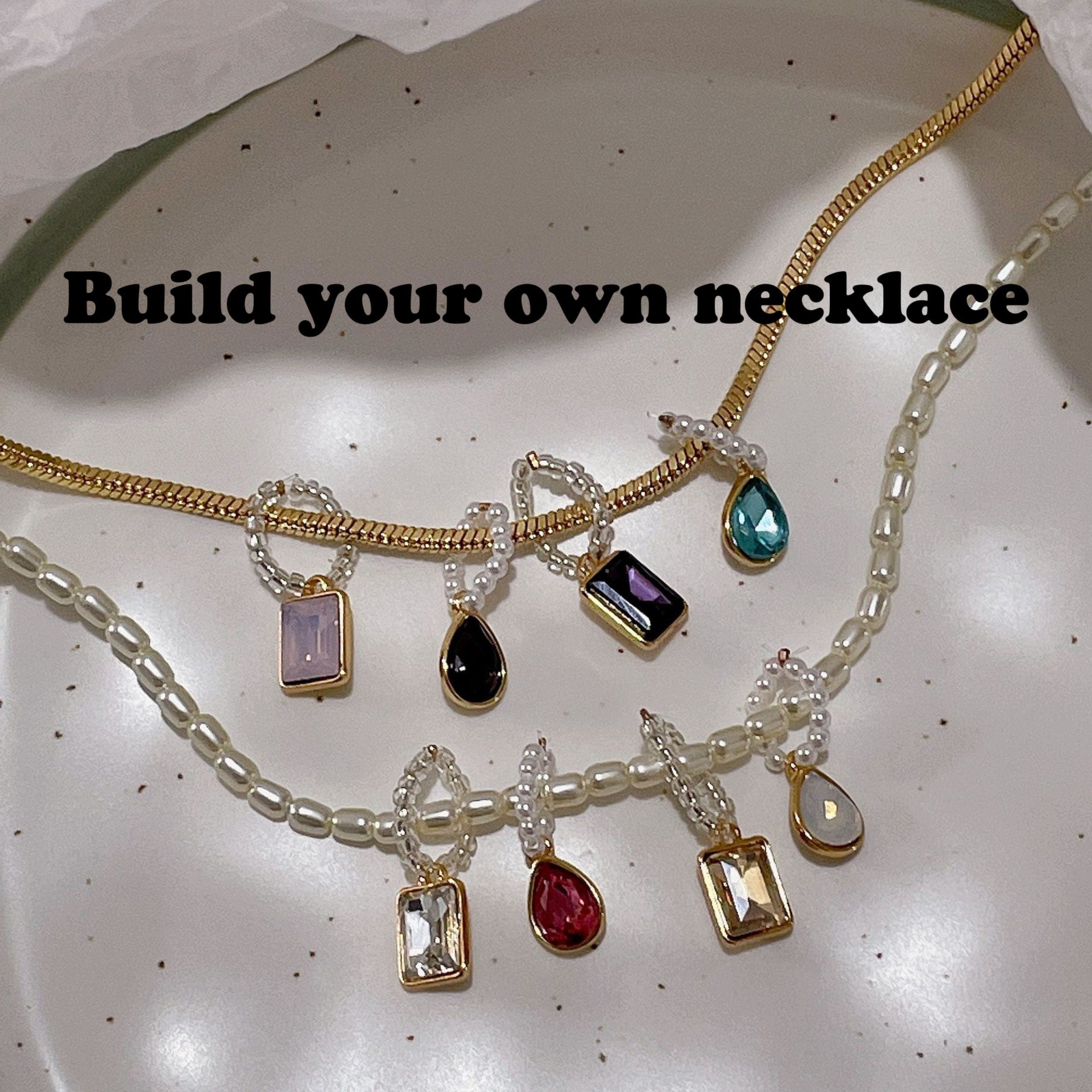 Make and Choose Your Own Necklace Jewelry - Personalized DIY pendant charm necklace choker. Super creative and fun to build your unique necklace jewelry! Gold box chain. baroque pearl bead chain for you to choose. variety color of gemstones available to create your characteristic necklace. Customized beautiful jewelry gift idea for birthday|holiday|Christmas gift for men and women.