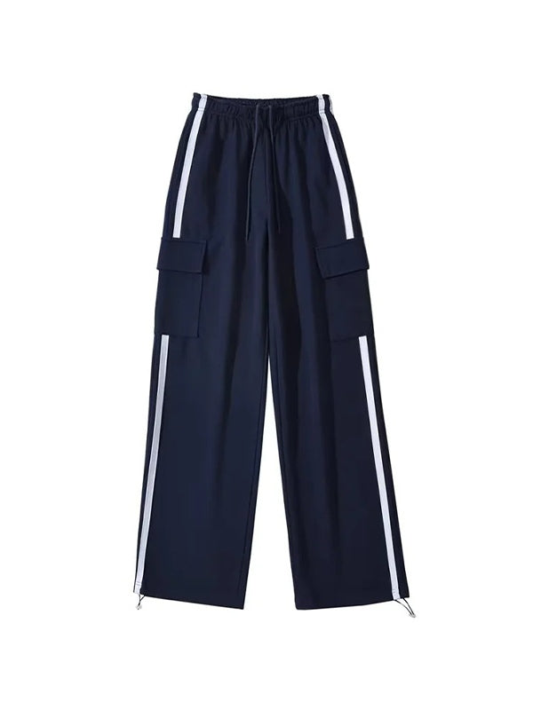 Description: These retro girls sweatpants have a drawcord waist style. shaped to a relaxed silhouette. features cargo style leg pockets. and side striped panels along the side. ended with drawstring toggle fasten on the cuffs.