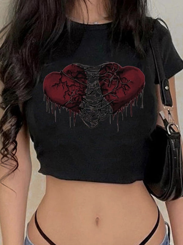 -Heart Pattern Print: With grungy heart pattern featuring on the front. adds a stylish and edgy touch. it's also paying tribute to grungy aesthetics.