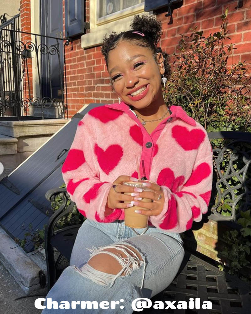 Product Details: Cropped jacket with teddy fabric and heart graphic