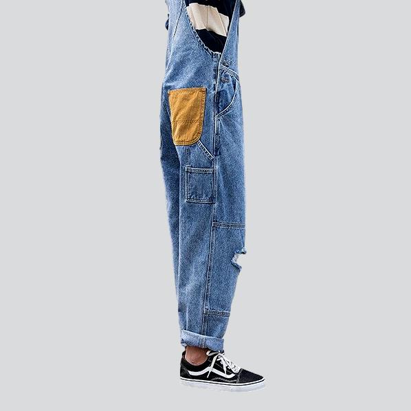 Make a statement in our 2023 Spring-Summer Collection streetwear men's denim jumpsuit! Its street-style baggy fit. ripped details. suspenders closure. and luxe denim fabric will have you turning heads wherever you go. Perfect for any occasion. you'll be the envy of the crowd with this fashion-forward piece!