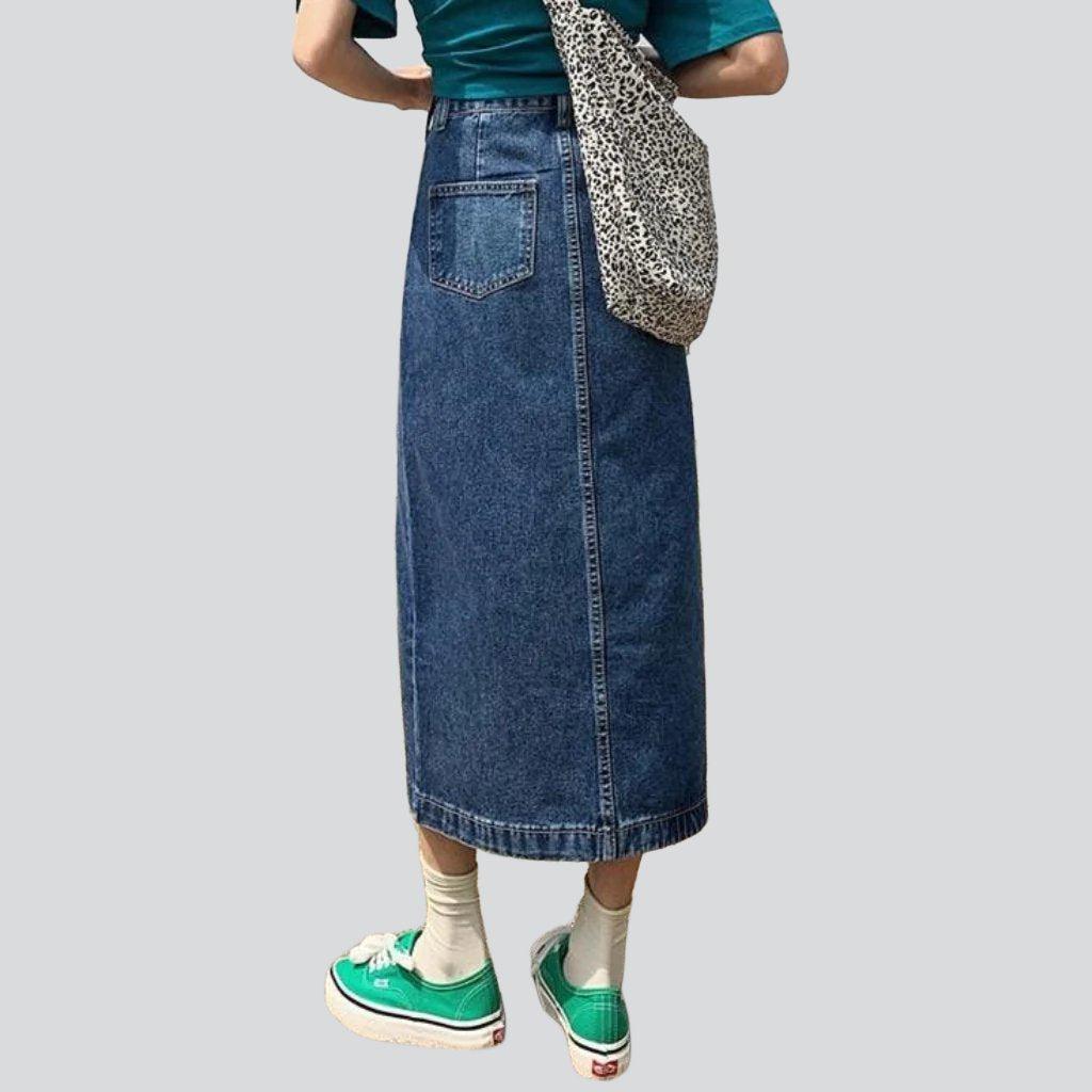 Step out in style with this denim skirt! Its retro allure and trendy touches will make you the star of any event. Whether you're going for a carefree day look or a bold evening ensemble. this skirt is a must-have for any wardrobe.