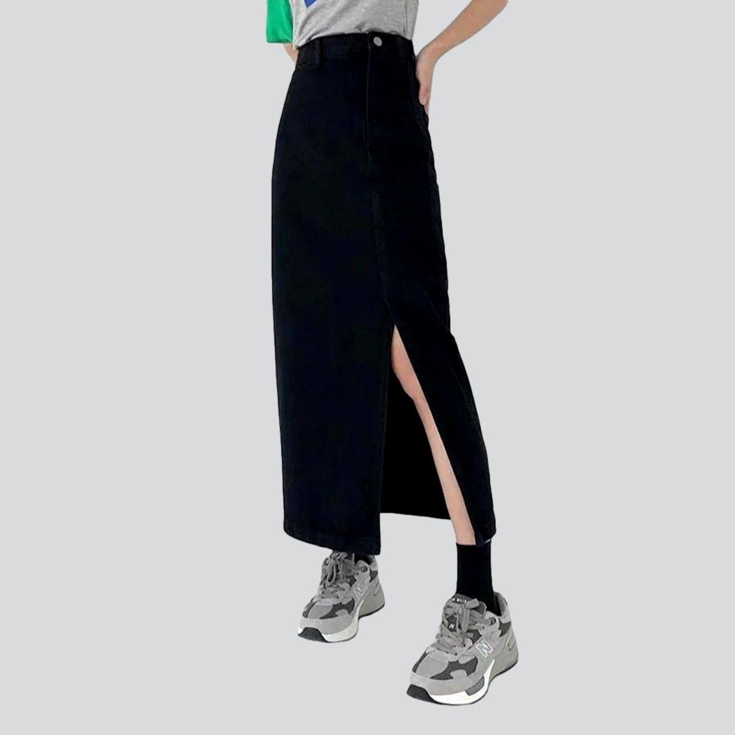 Make a statement wherever you go add the Side Closure Elongated Denim Skirt to your wardrobe today!