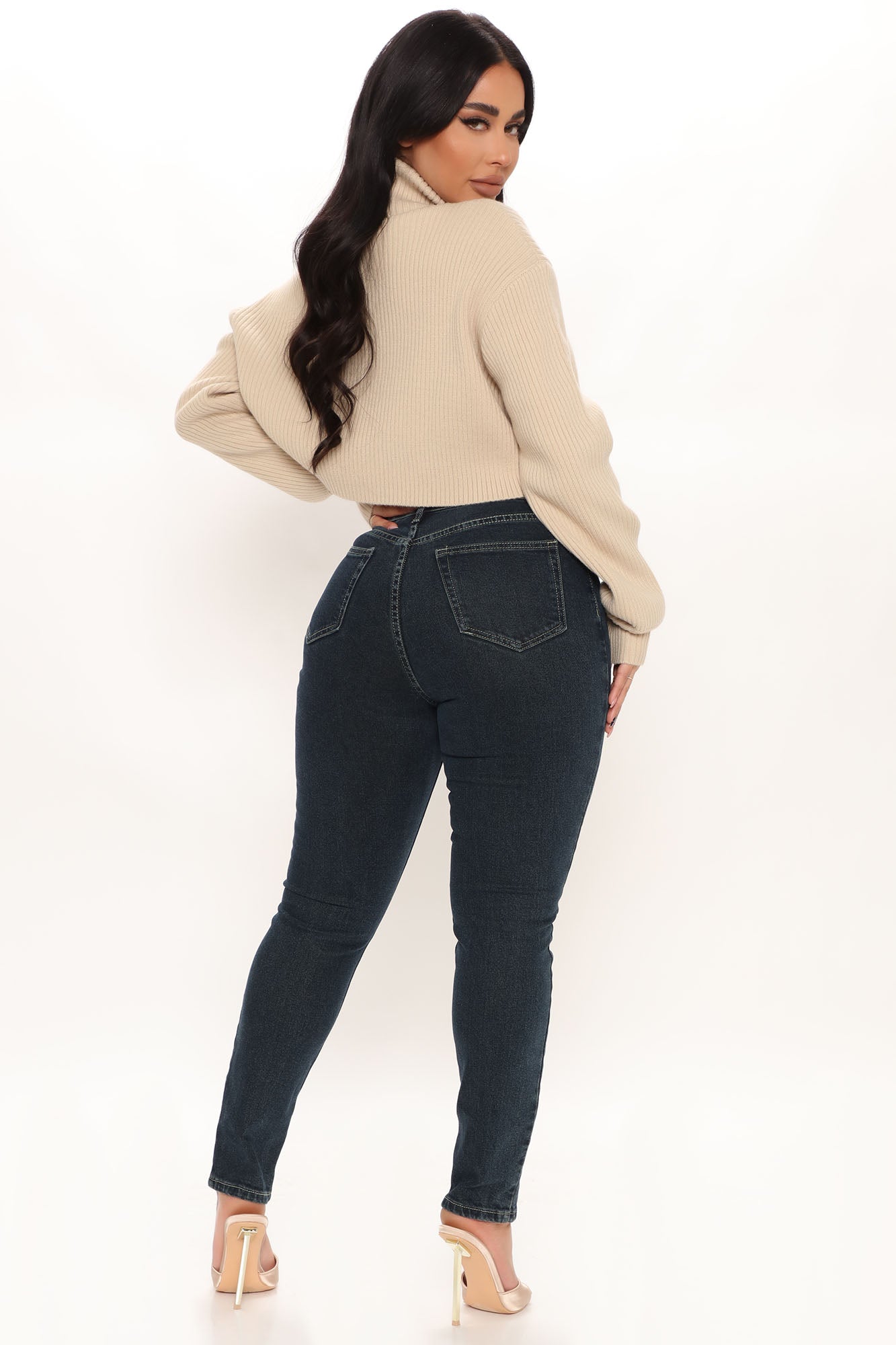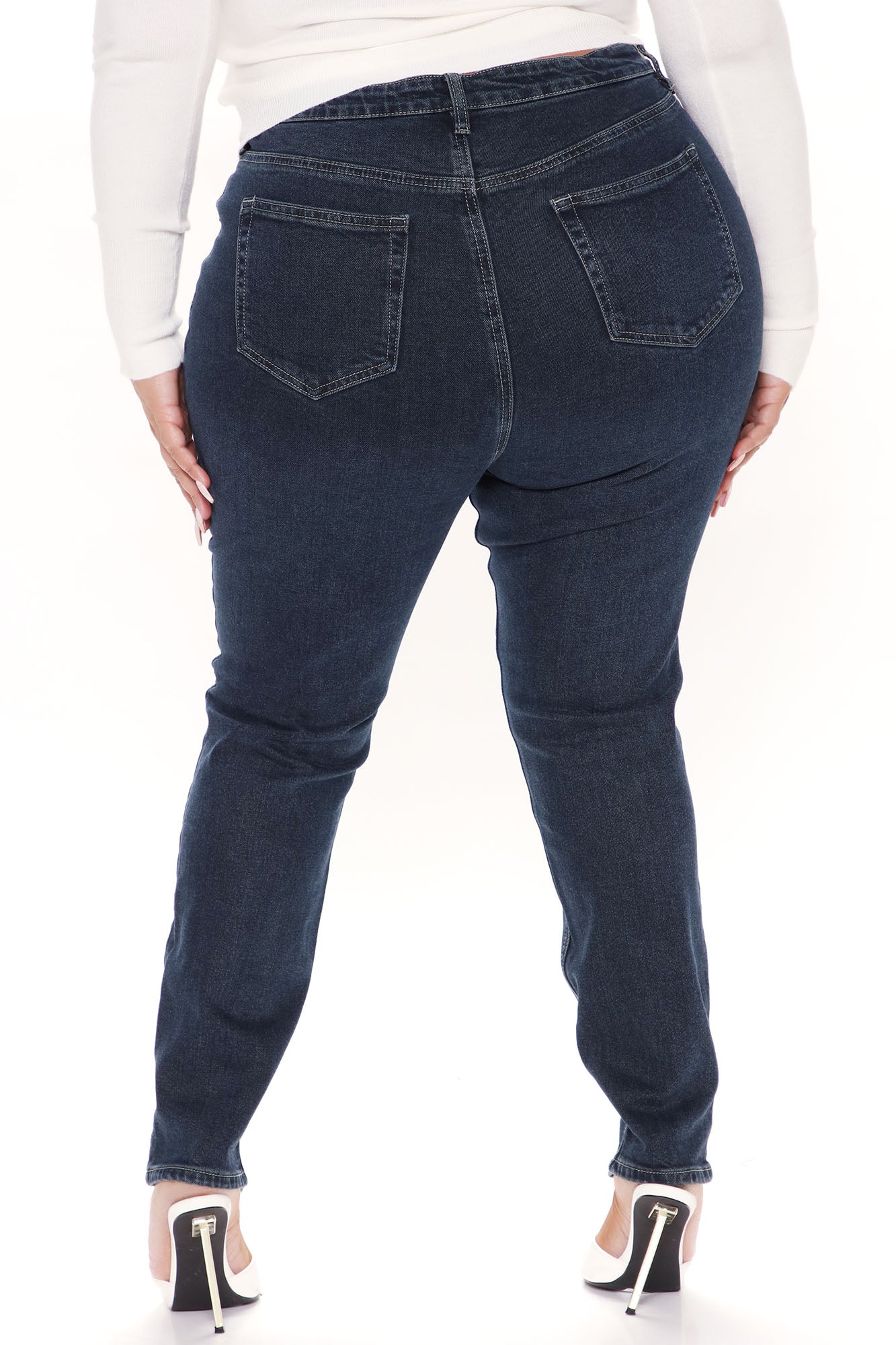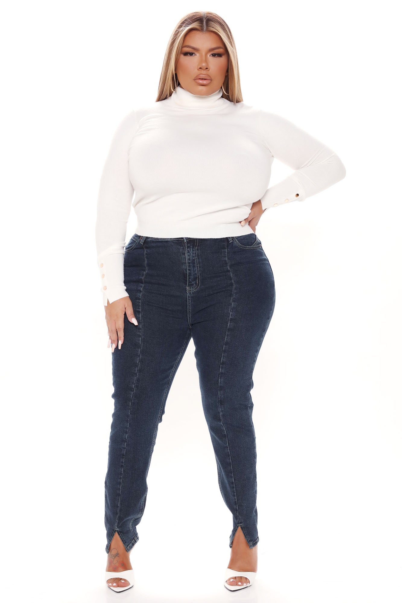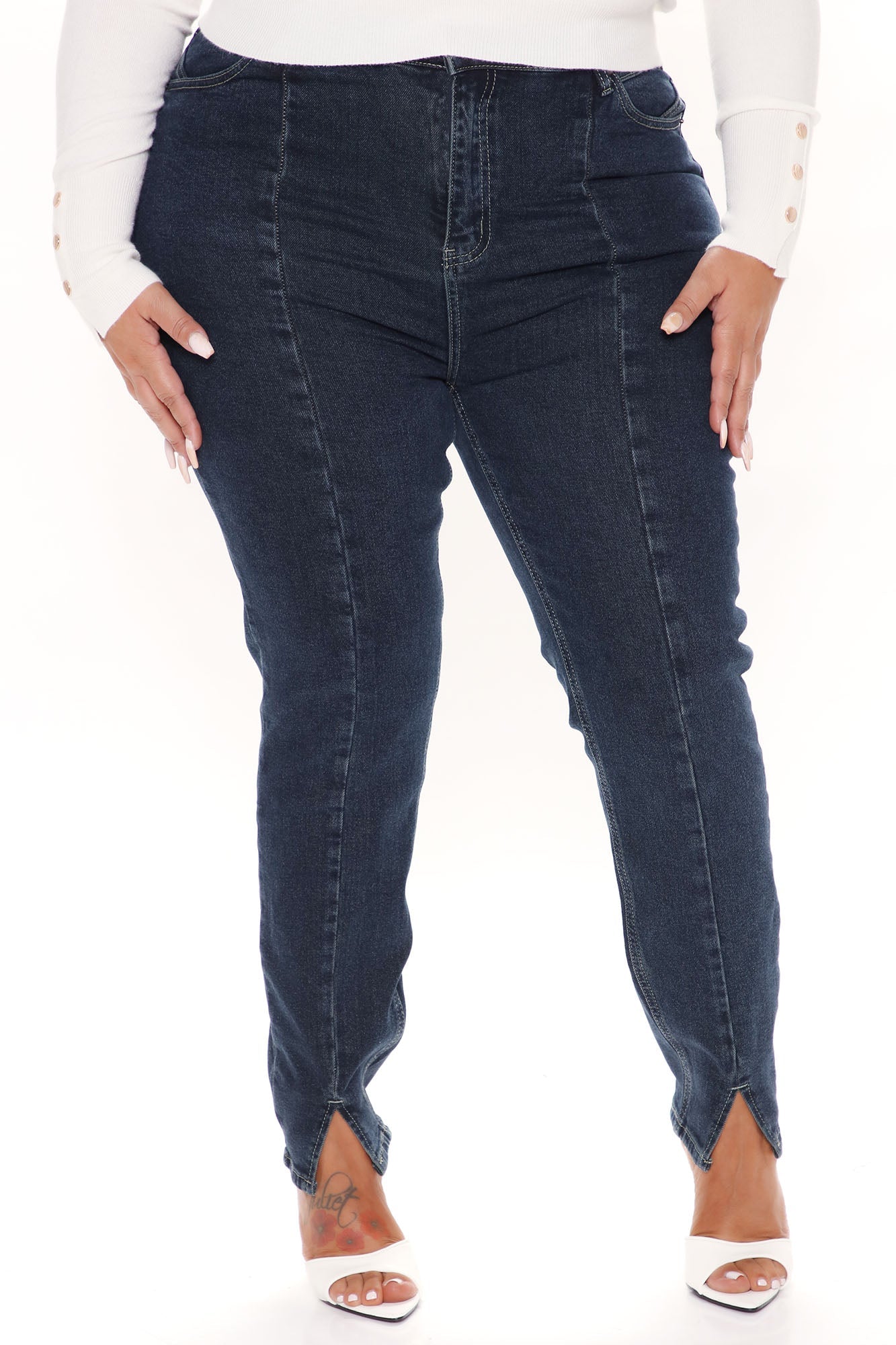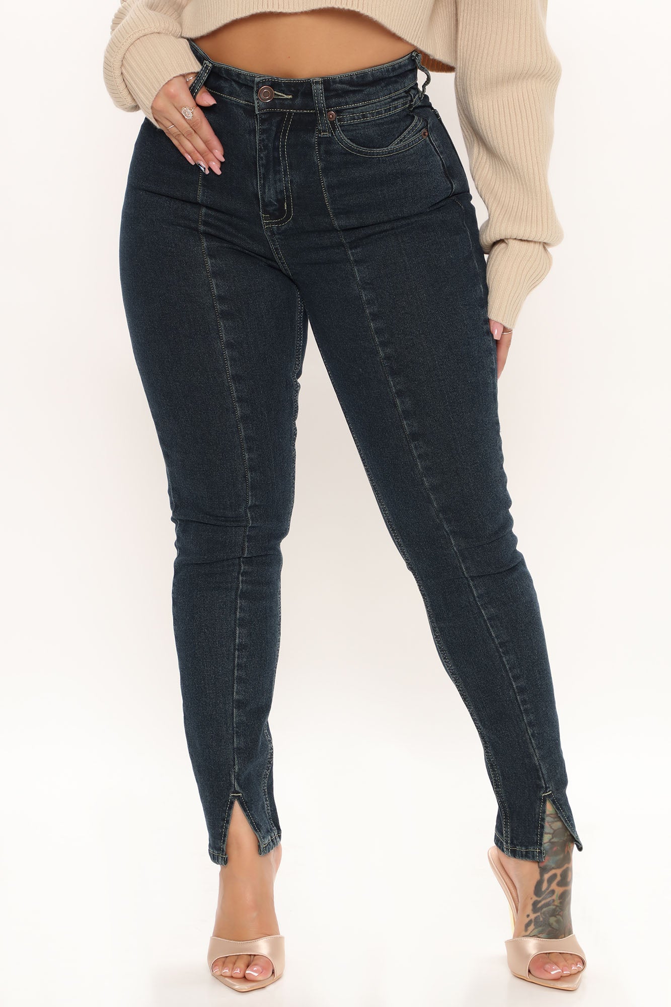 Sienna Seam Front Ankle Slit Skinny Jeans - Dark Wash
