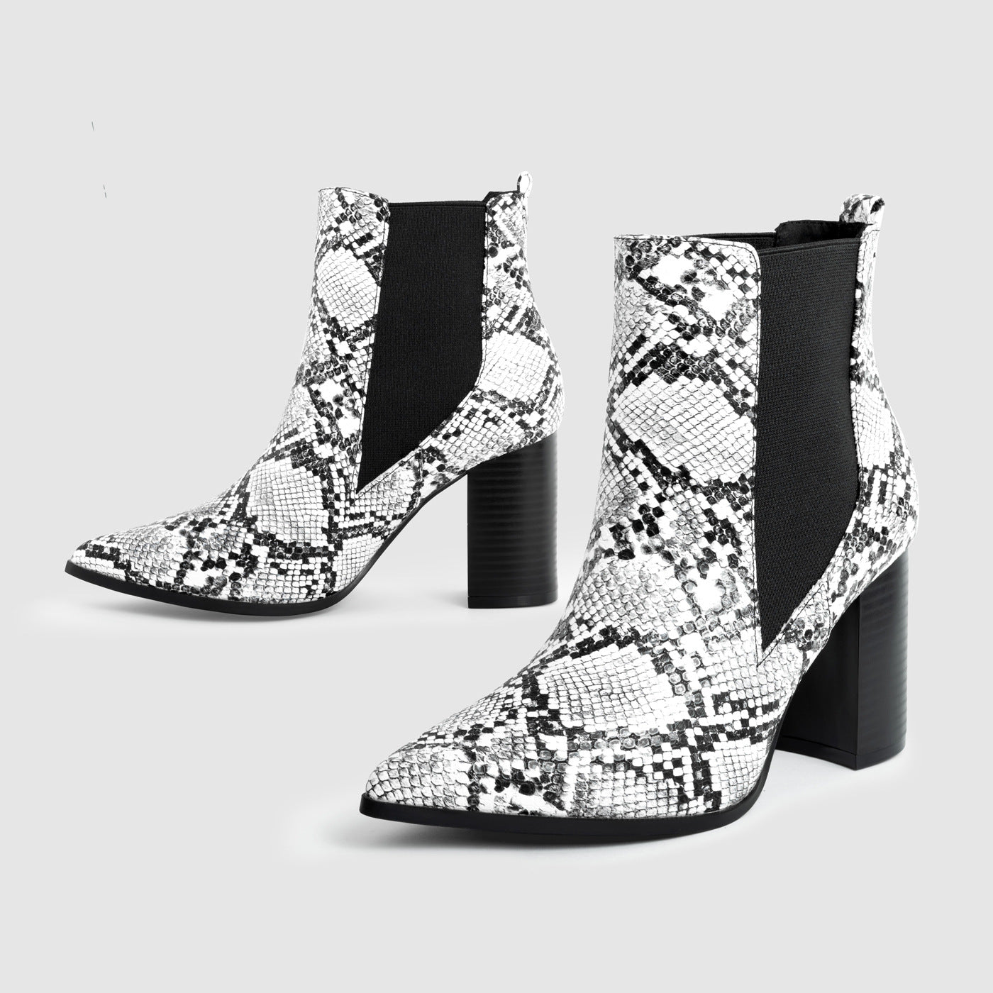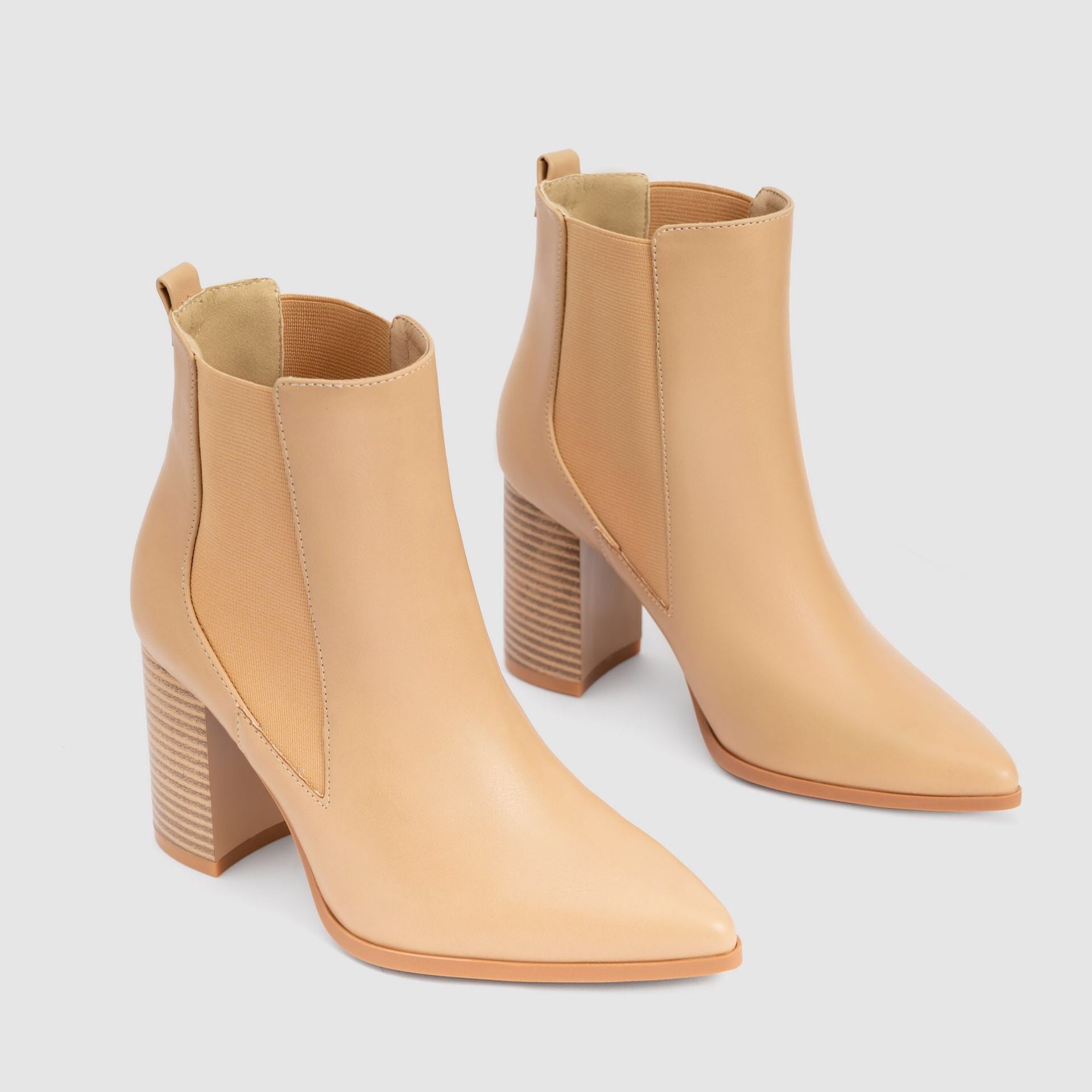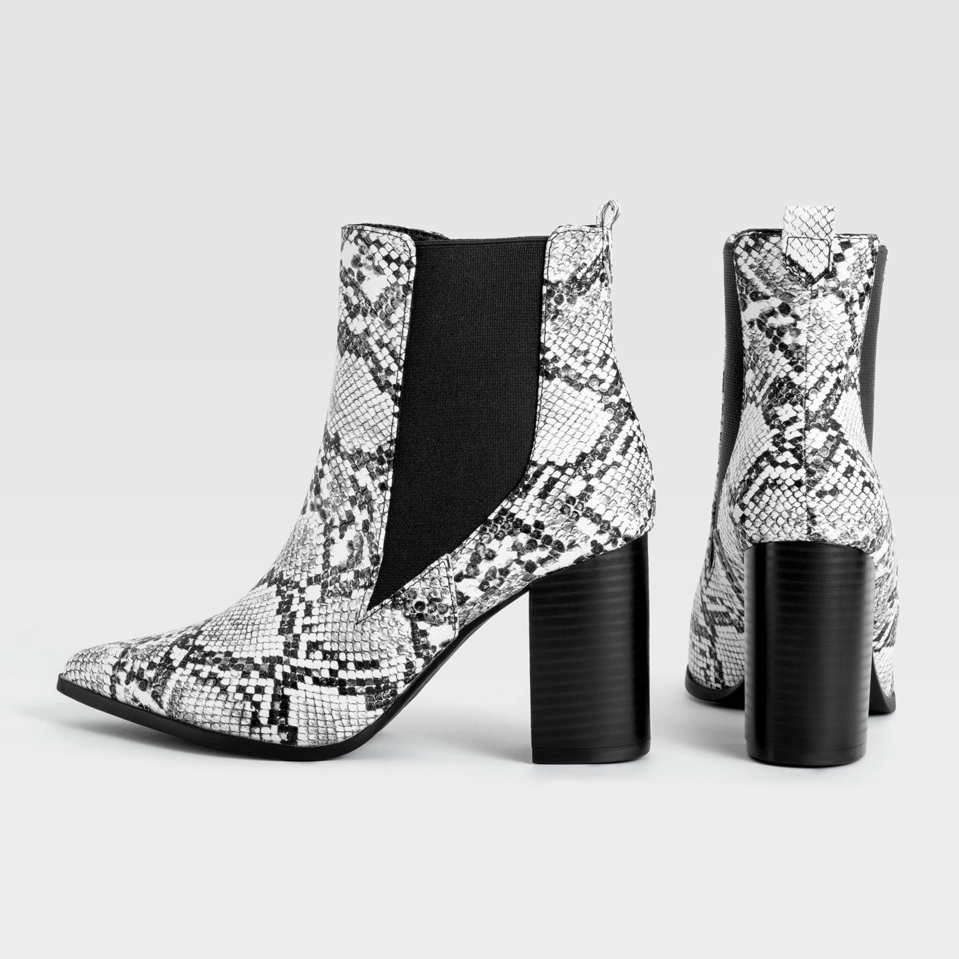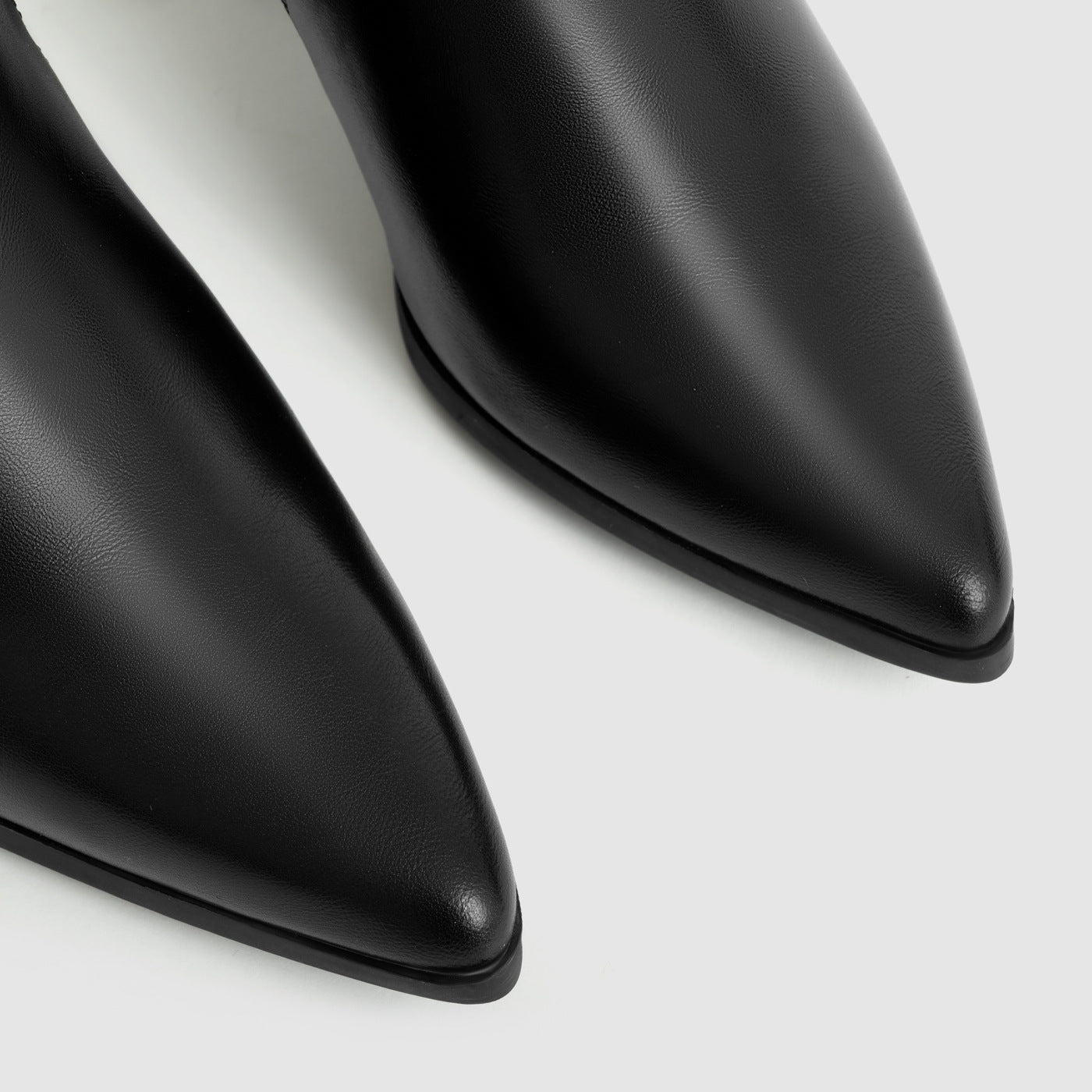 Keep it simple and always chic.These basic black booties feature a pointed toe. a chunk heel. and elastic gore for easy slip-on wear with visual appeal! Boots are made of a faux leather material.