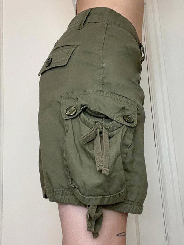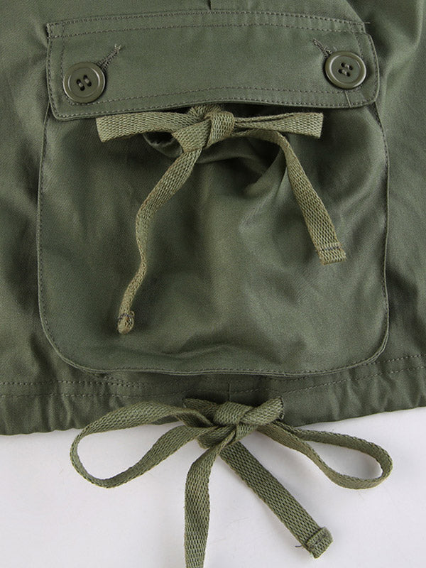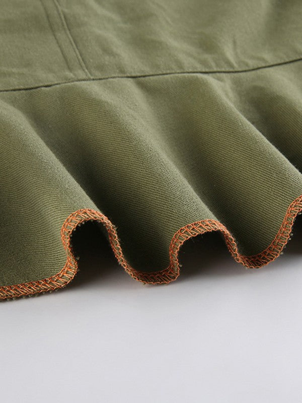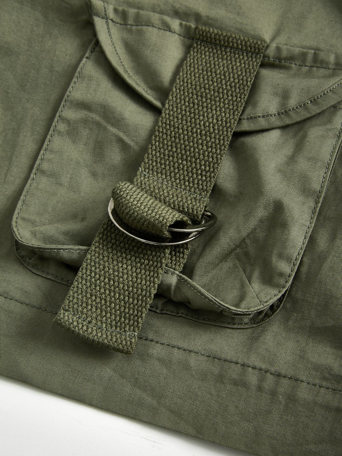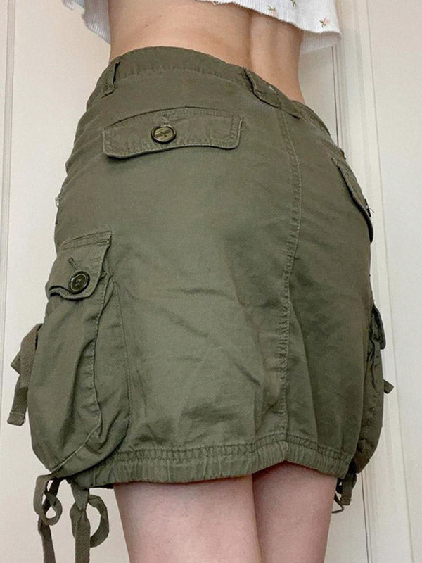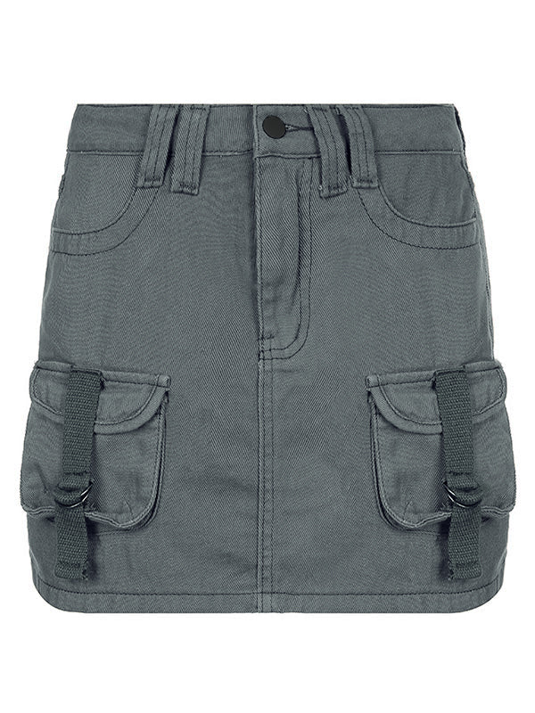 Design: This parachute cargo skirt shaped to a-line silhouette. features cargo pockets patched with strap detailing. with multi belt loops and a zip button fastening design.