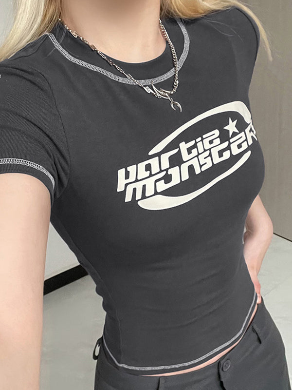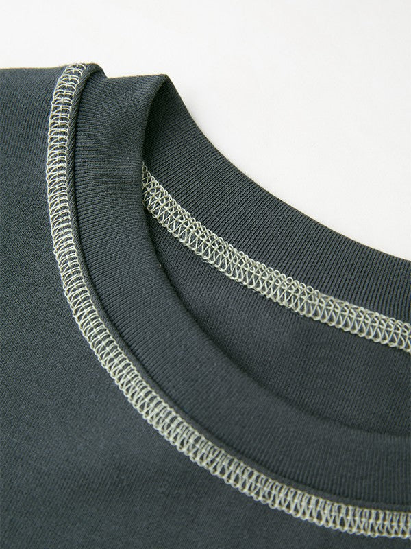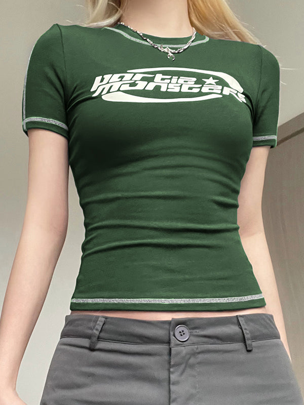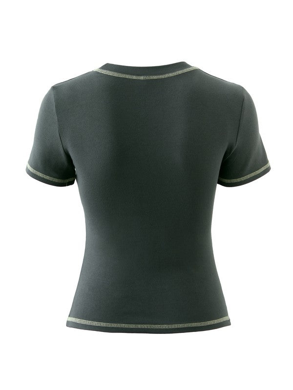 Description: Inspired by earth tone aesthetics. these baby tees are staple for go-to outfits. Made from cotton with slightly spandex fabric. it has a logo design at front. and with contrast stitched details through the body.