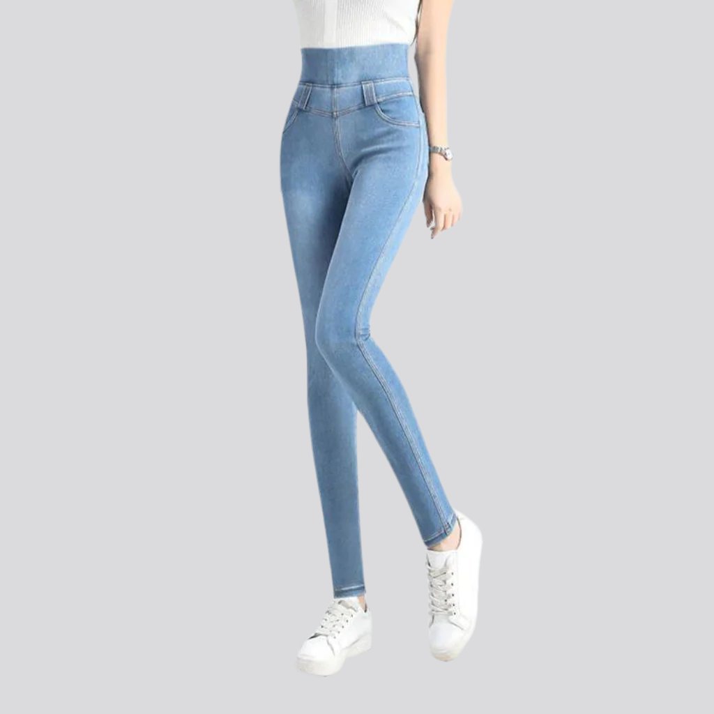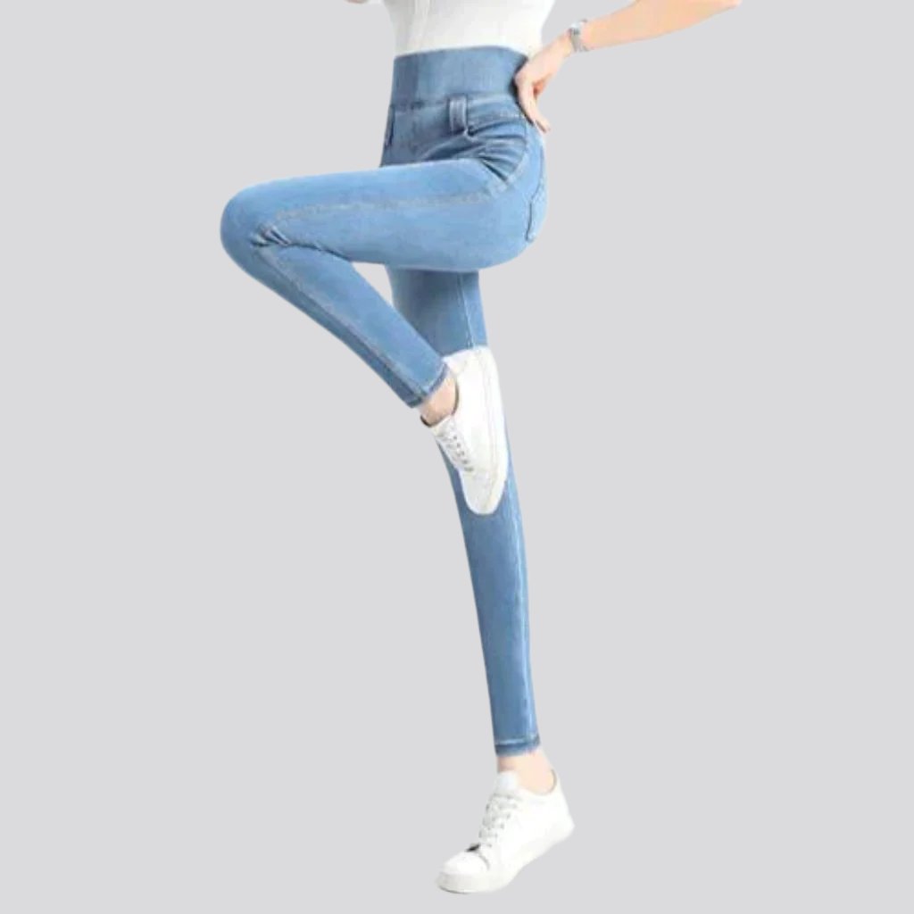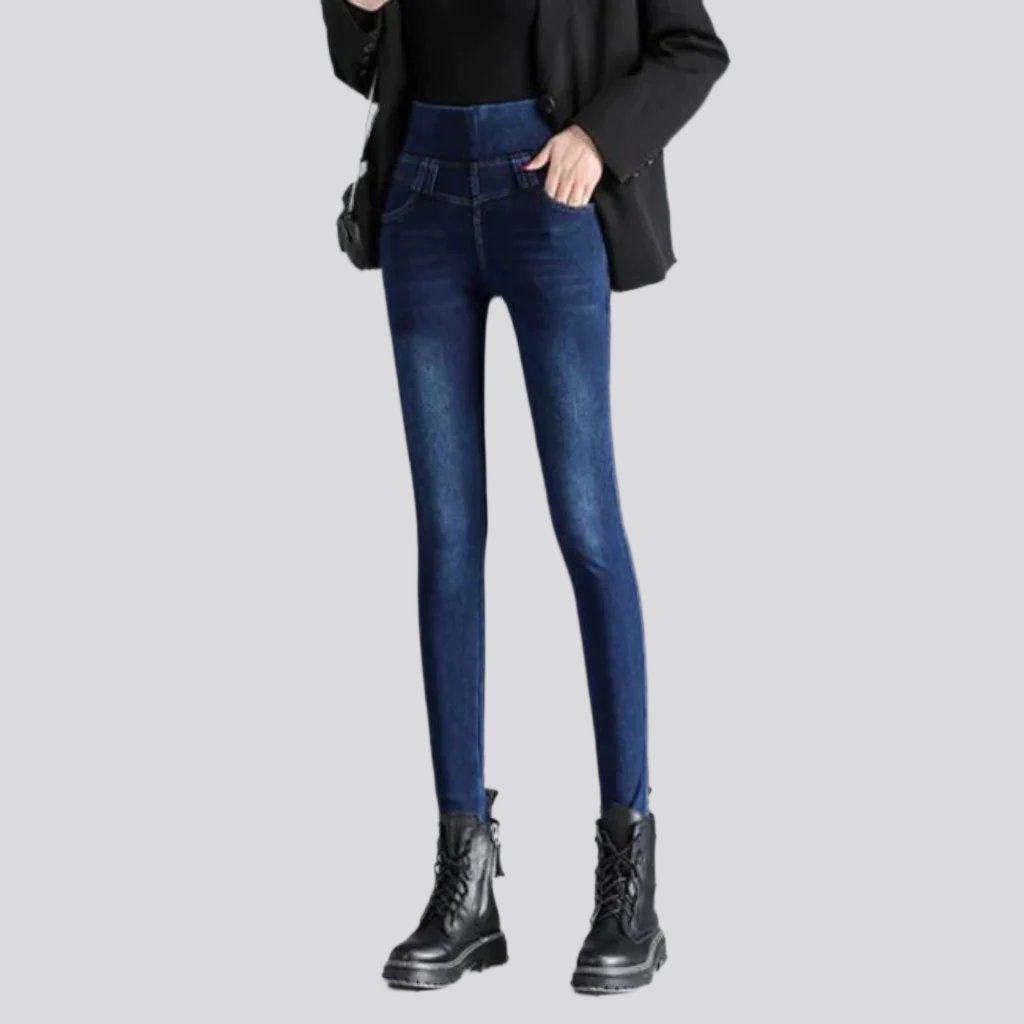 Elevate your style with our 2023 Autumn-Winter Collection of stonewashed. stretchy. casual jeans! Featuring a rubber closure. these skinny. denim jeans are the perfect addition to your wardrobe. offering a touch of modern flair and effortless classic charm.
