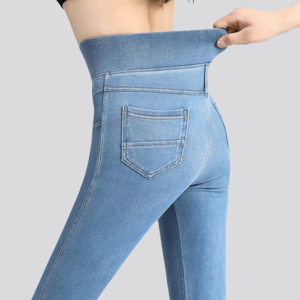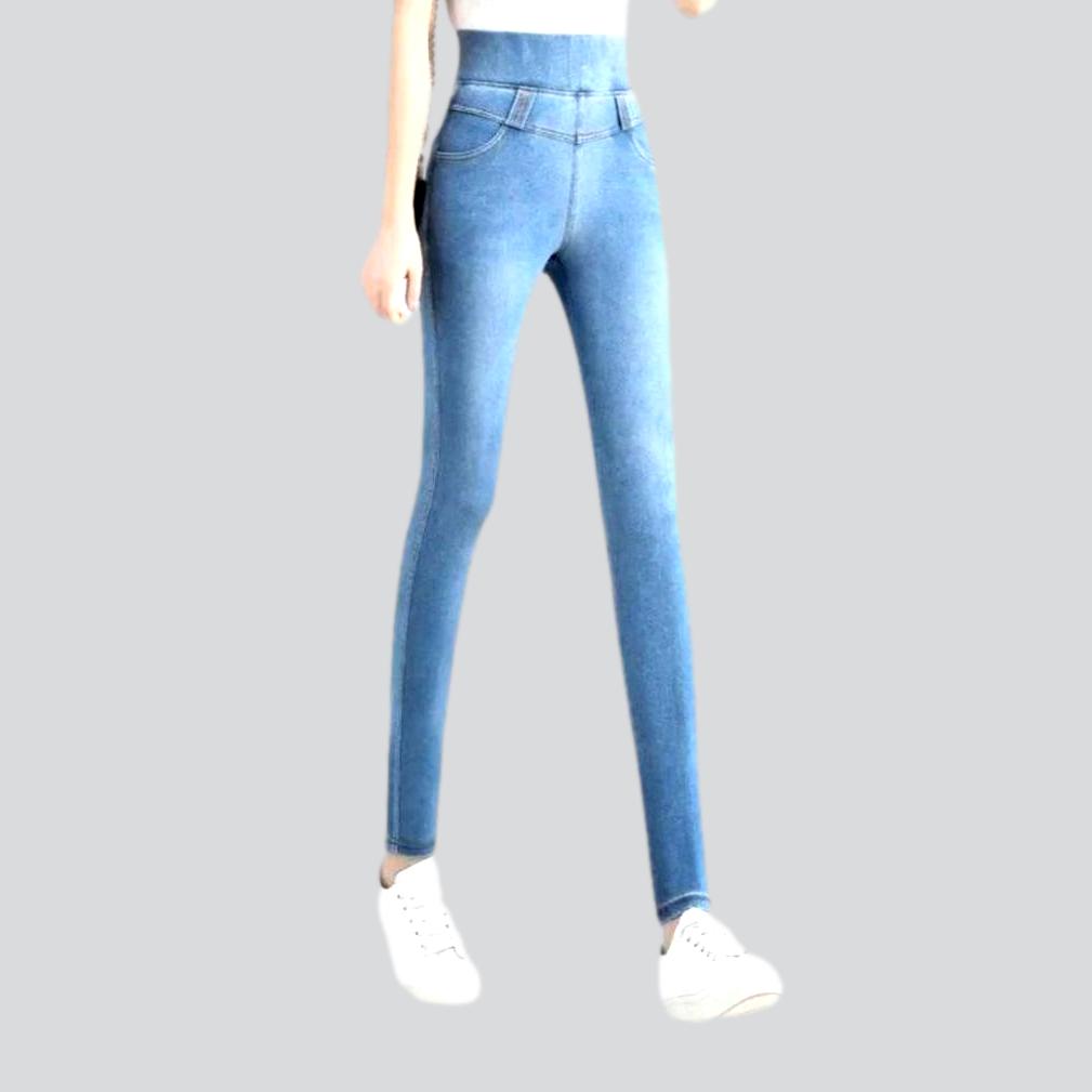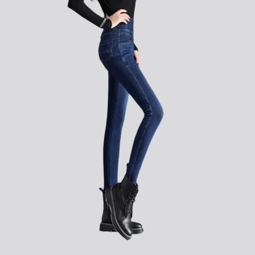 Elevate your style with our 2023 Autumn-Winter Collection of stonewashed. stretchy. casual jeans! Featuring a rubber closure. these skinny. denim jeans are the perfect addition to your wardrobe. offering a touch of modern flair and effortless classic charm.