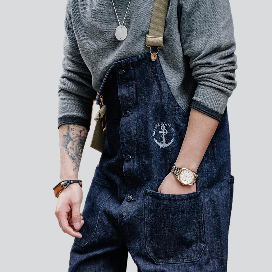 Introducing the 2023 Spring-Summer Collection's straight pocket slouchy denim jumpsuit. the epitome of 90s style! Fully embracing the trend renaissance. this piece will be your ultimate wardrobe staple. Crafted with premium quality denim and featuring a distinctive distressed pattern. it is the perfect blend of contemporary fashion and nostalgic grunge.