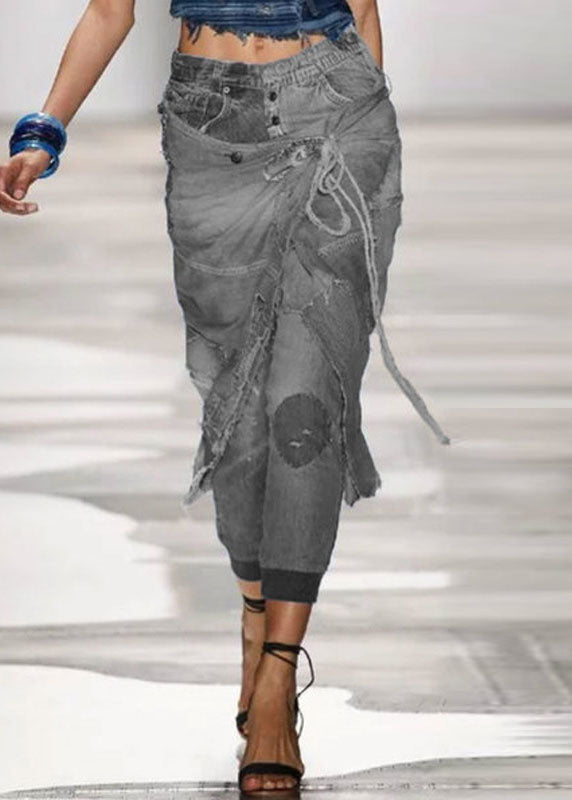 Stylish Blue Pockets Lace Up Patchwork Denim Beam Crop Pants Summer Fabric: Denim Fabric Size & Fit: This garment fits true to size. Length: Size L measures 38.61"from waist to hem. Waist:Fitted - very fitted at natural waist Hip: Loosely Fitted. room for hips. Hand Wash Cold.