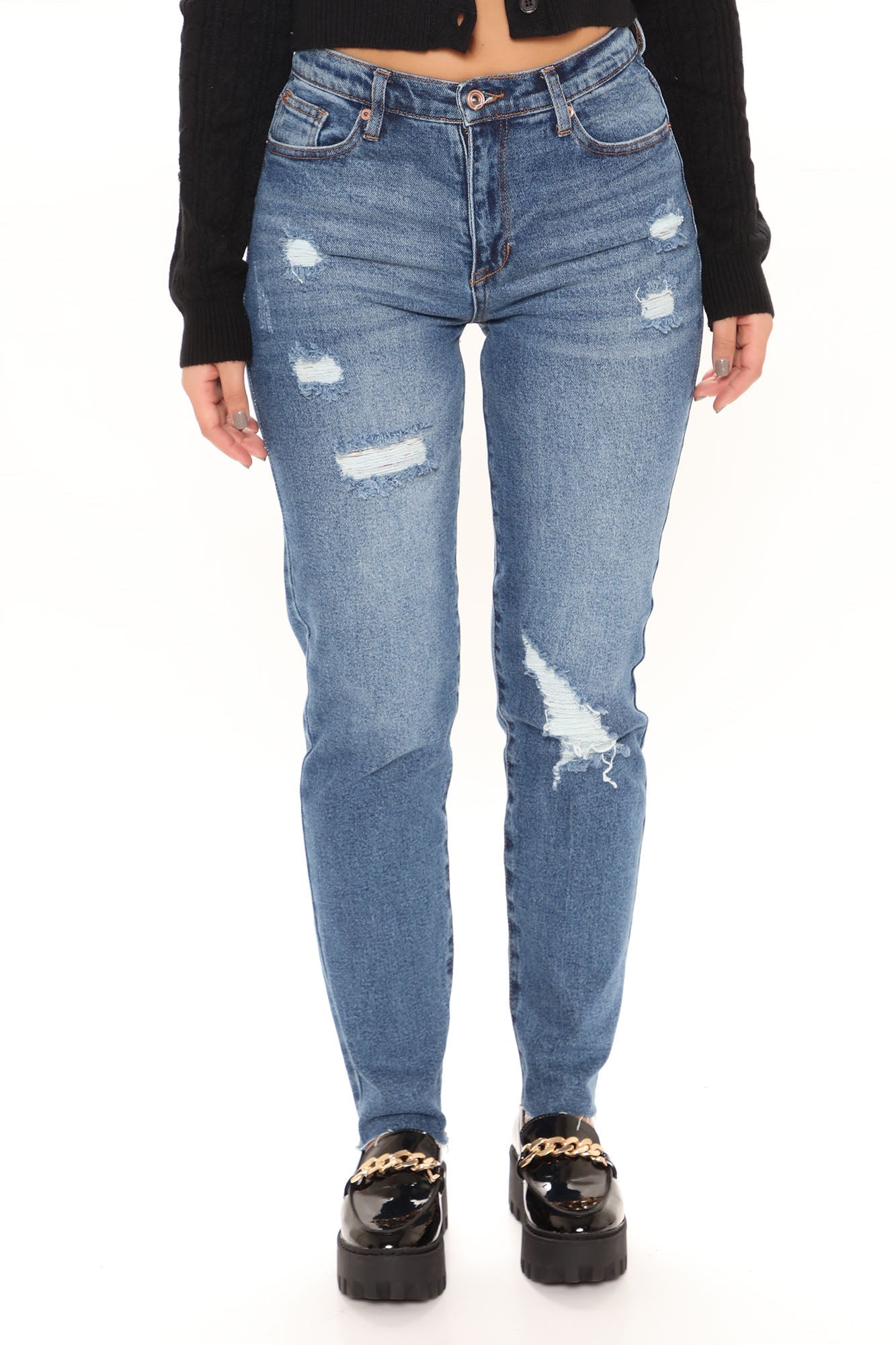Survival Of The Fittest Ripped Boyfriend Jeans - Dark Wash