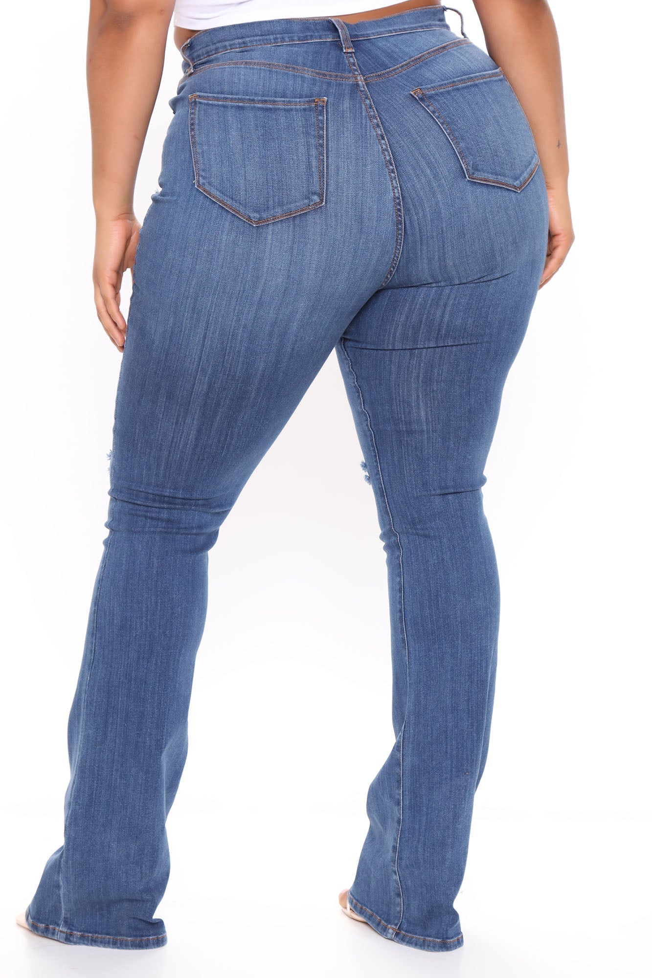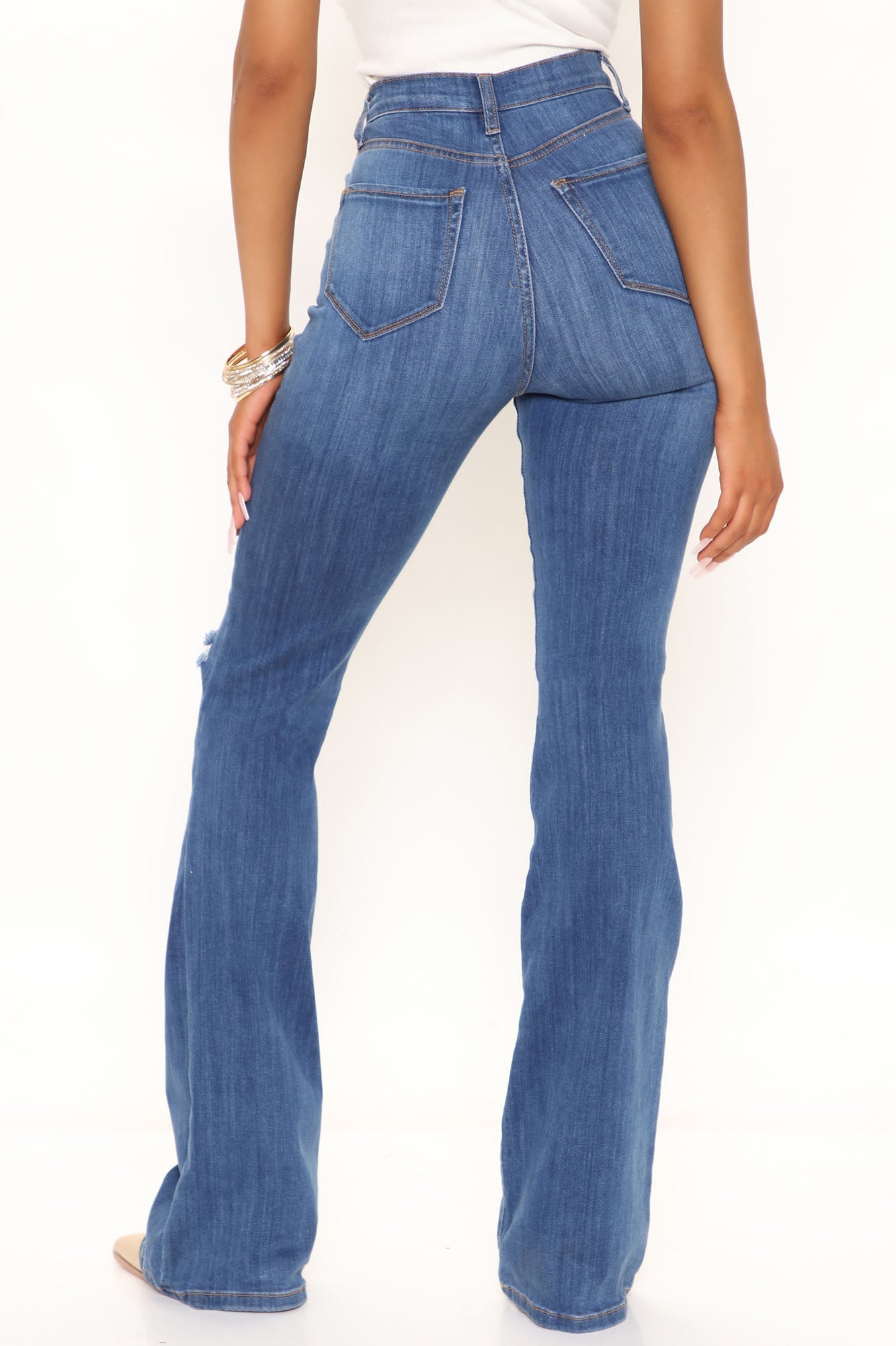 Tall Luxurious Distressed Super Stretch Flare Jeans - Dark Wash