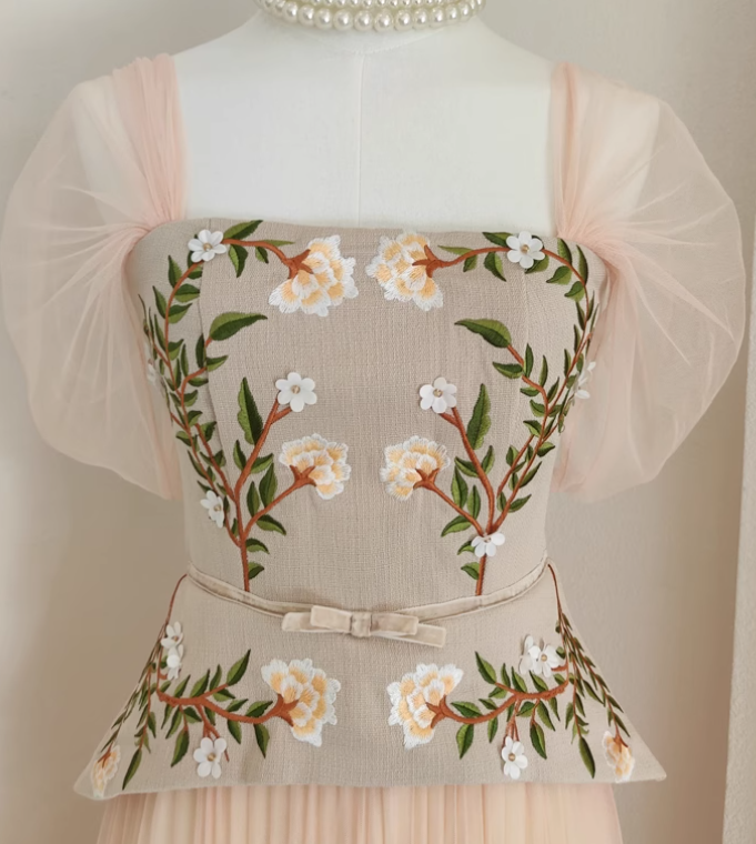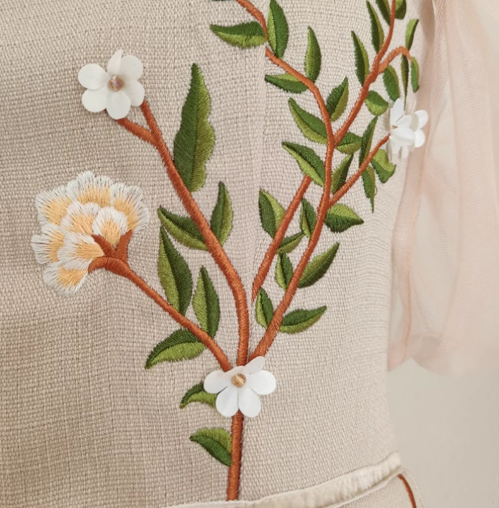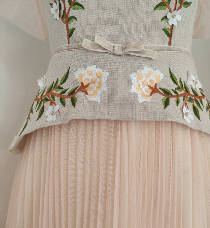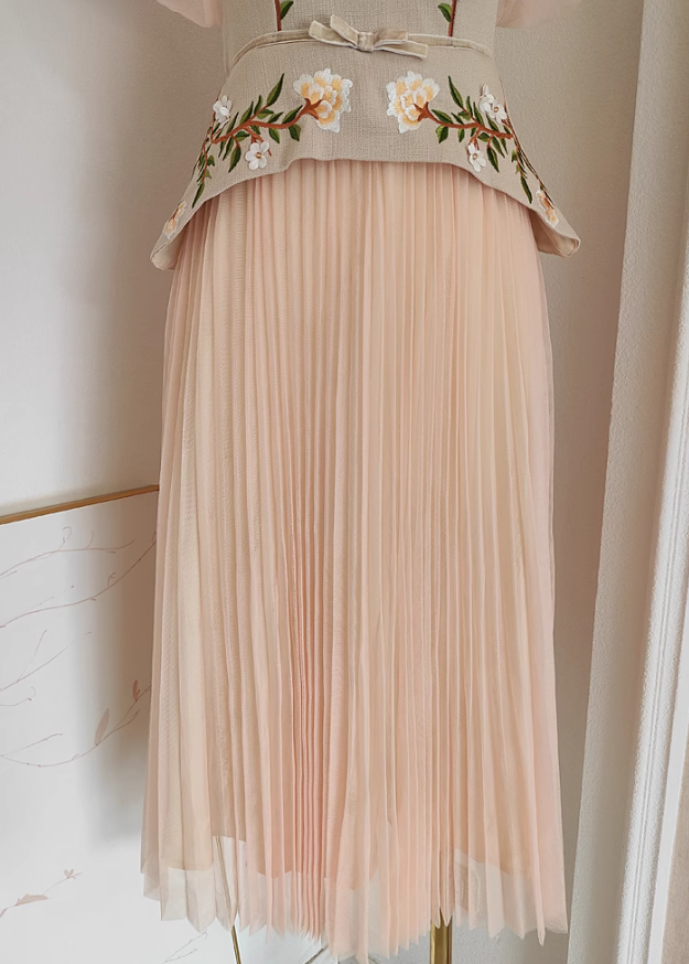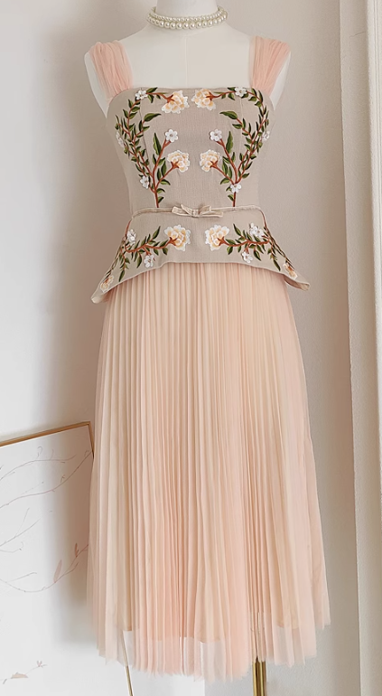 Sophisticated design and meticulous construction make the "Daffodil" dress ideal for a posh premier or an intimate affair. Featuring a luxurious polyester-chiffon fabric blend. embroidered floral accents. and ruche pleated styling throughout. Don't hesitate to make a statement.