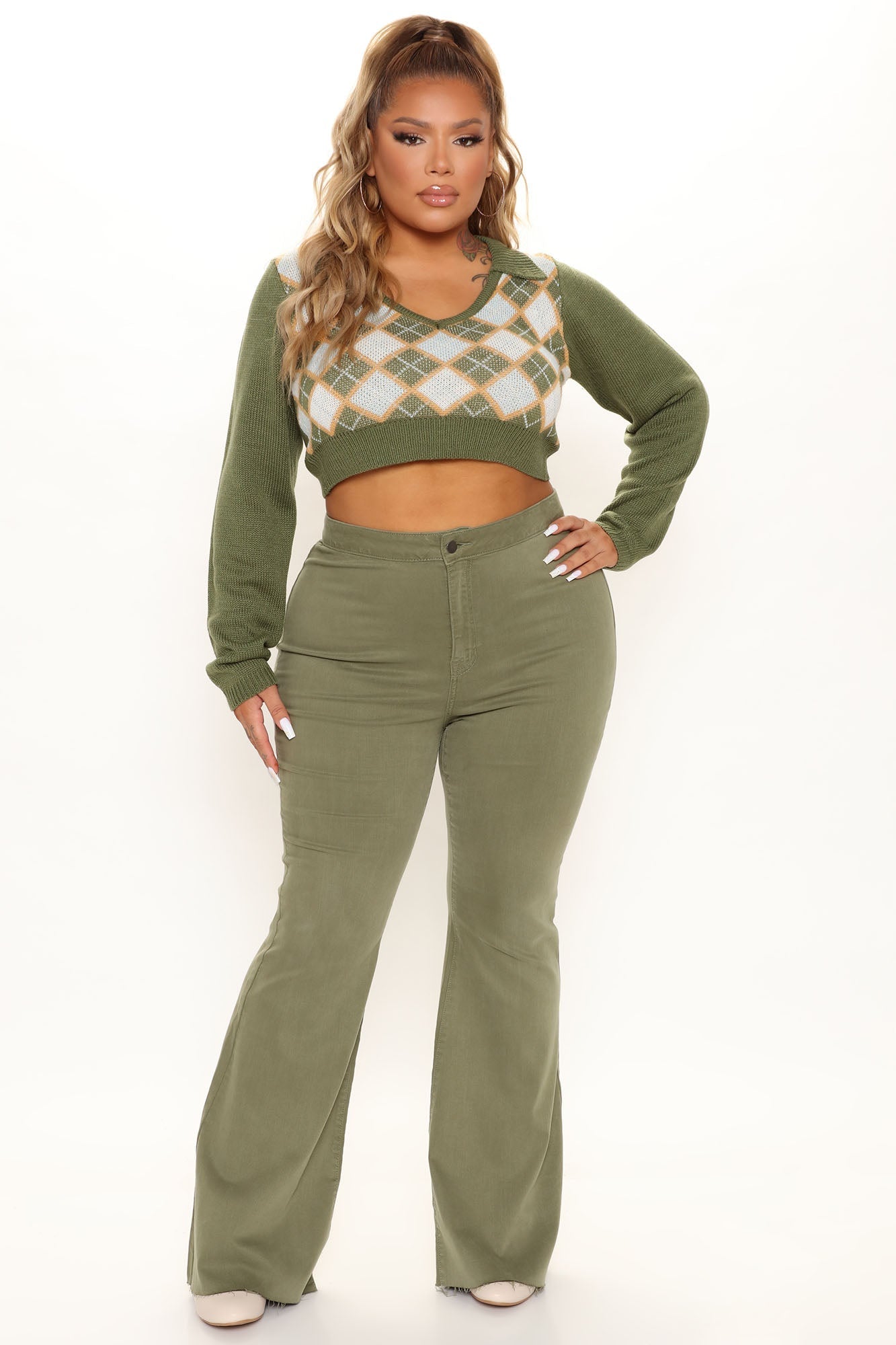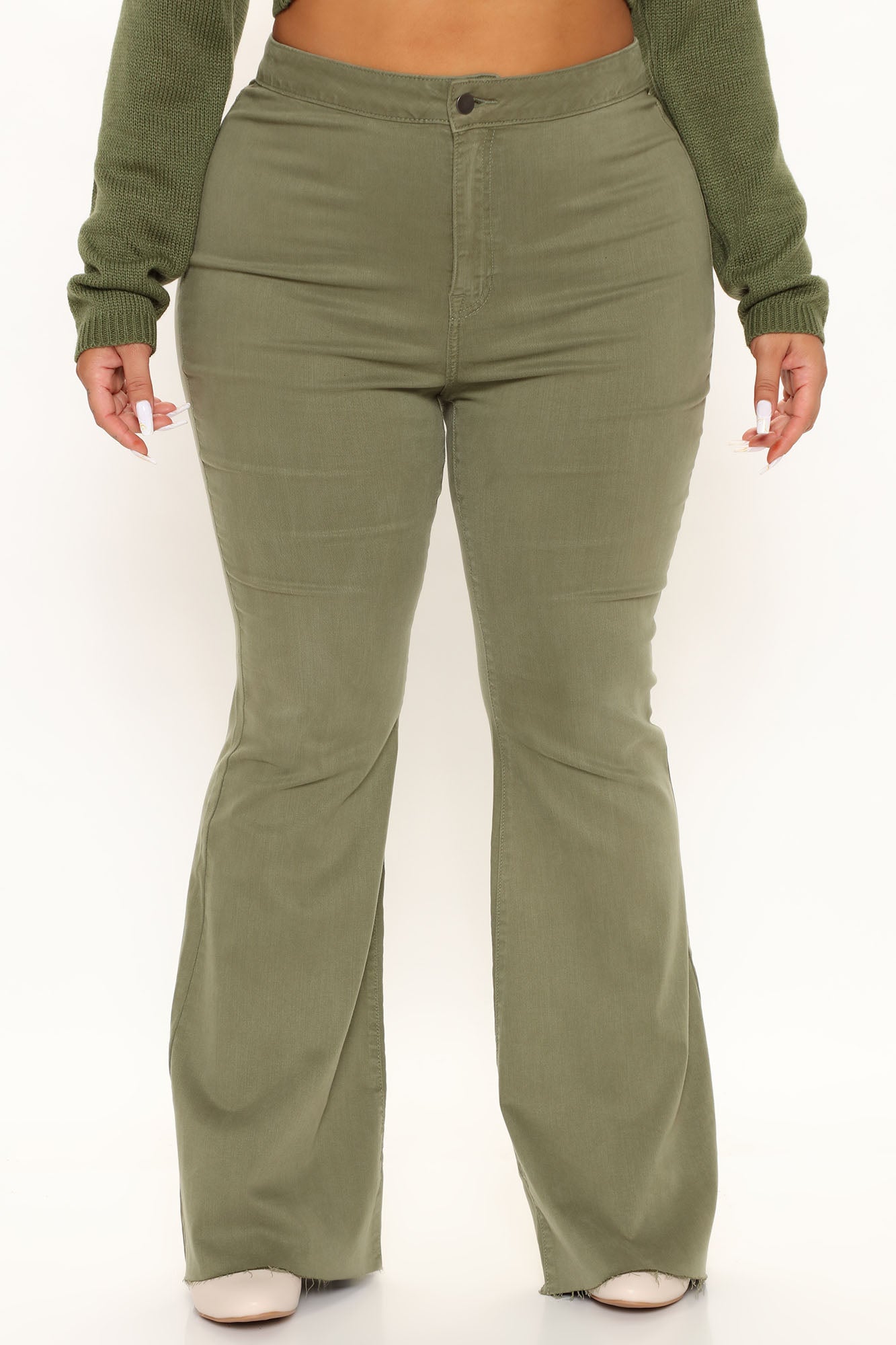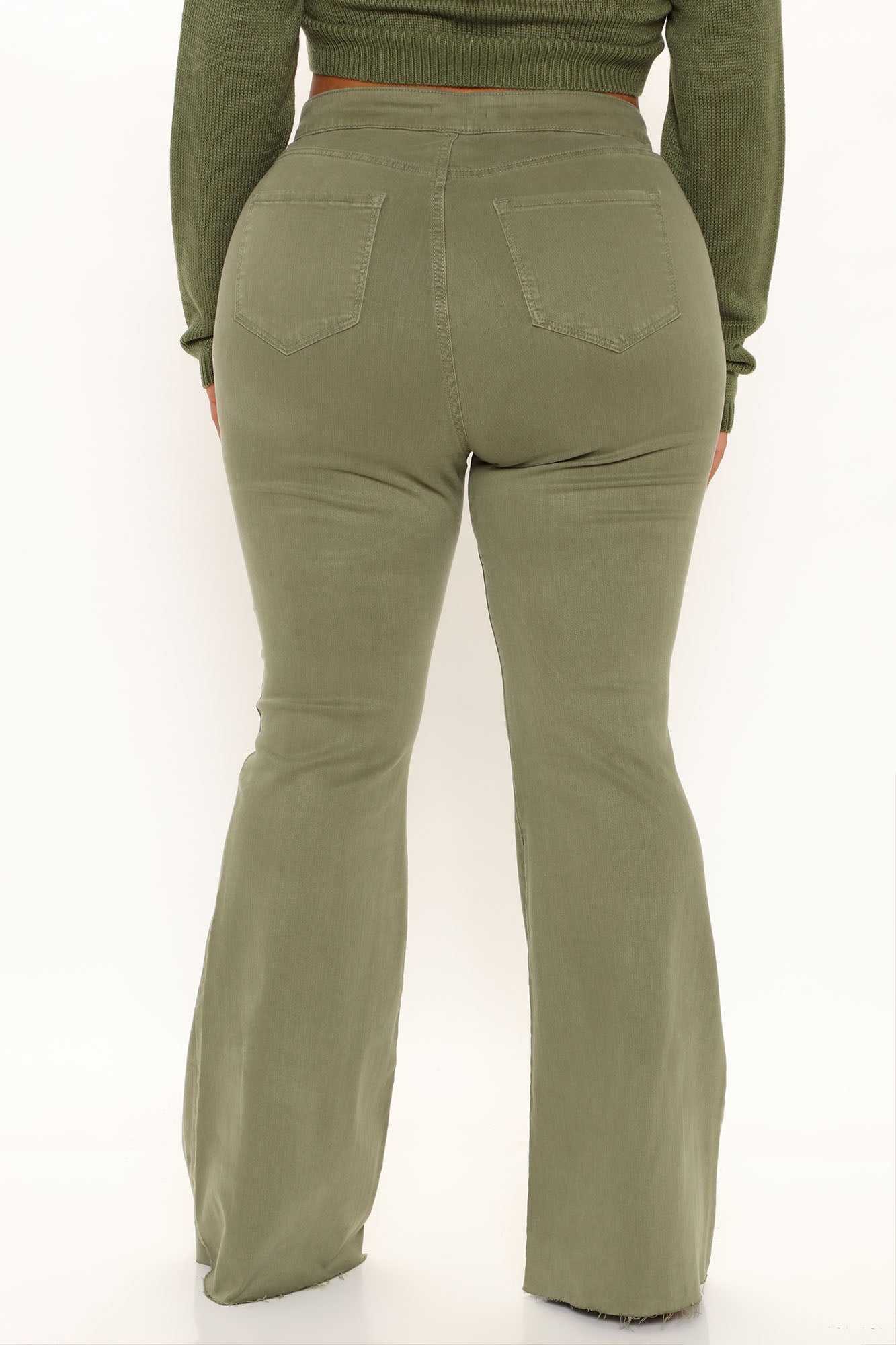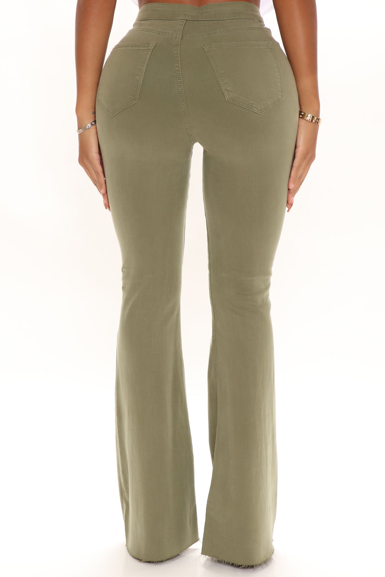 The Time Is Now High Rise Flare Jeans - Olive