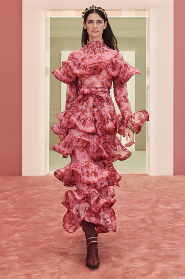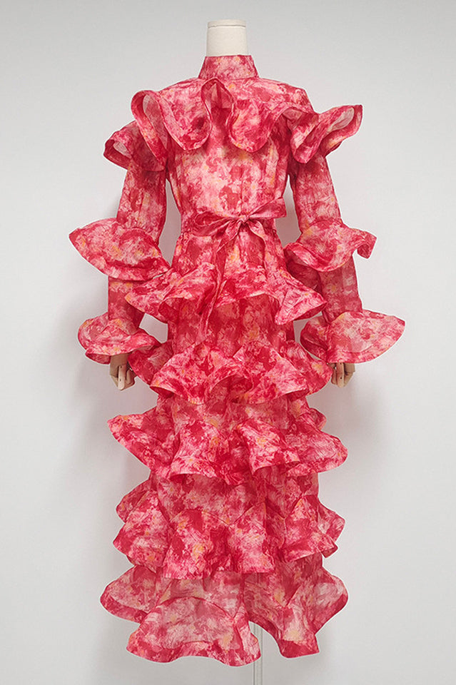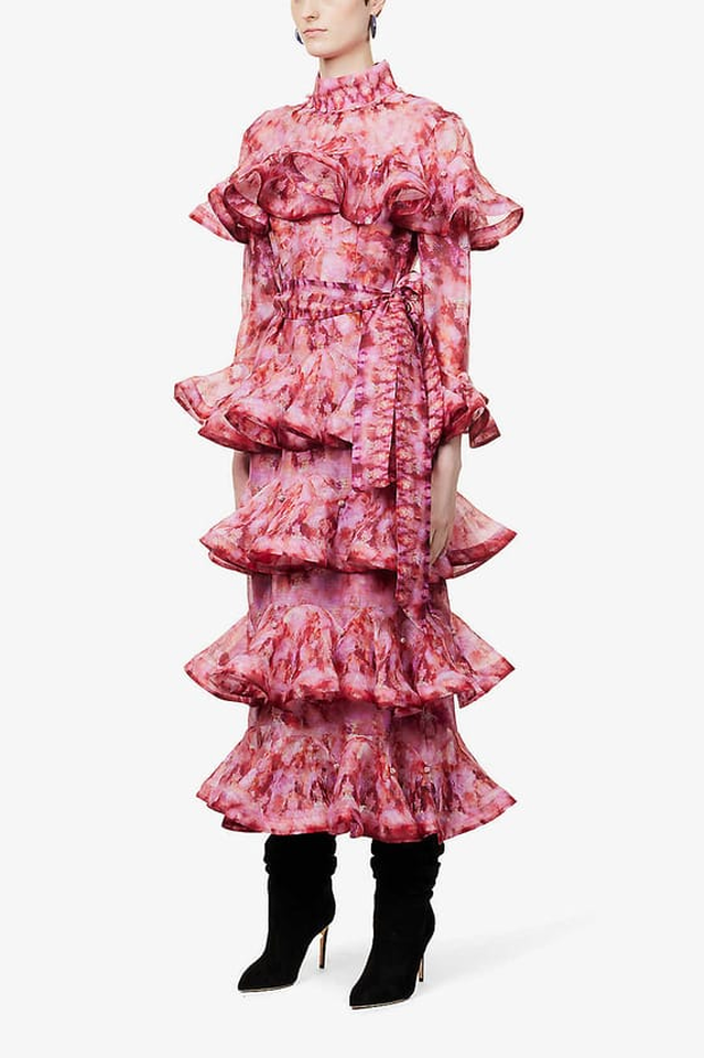 this midi dress is made from silk and linen with crinoline tape that reinforces its ruffled tiers. A truly beautiful piece.