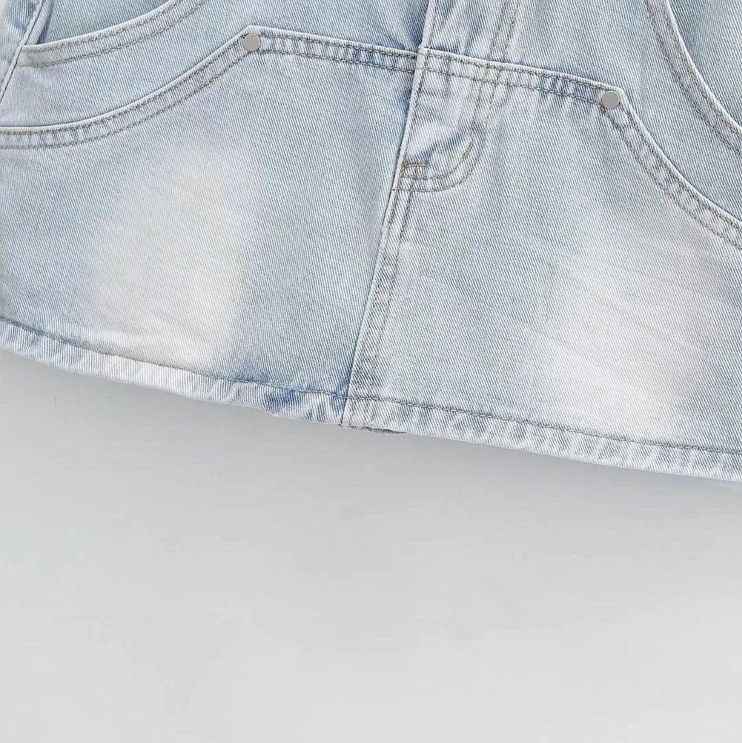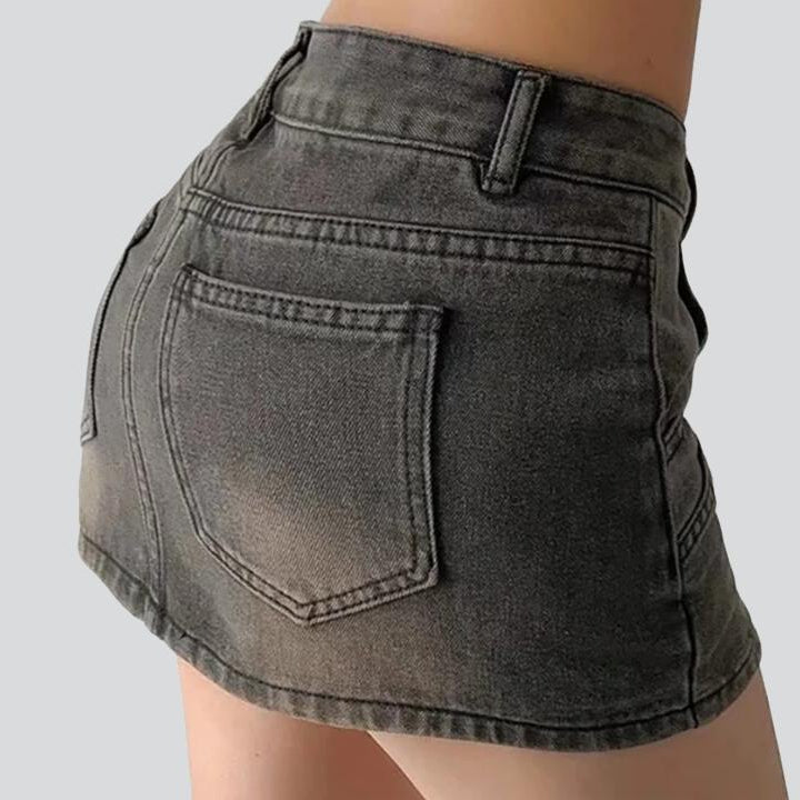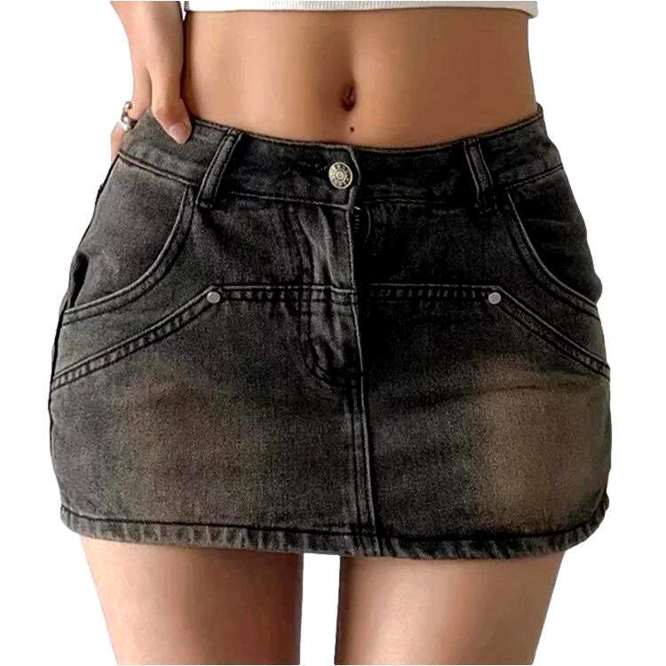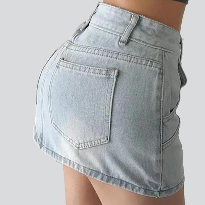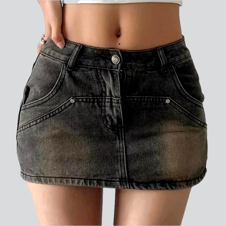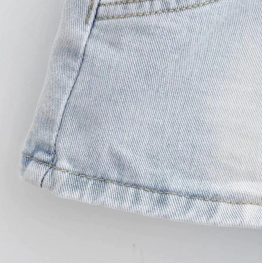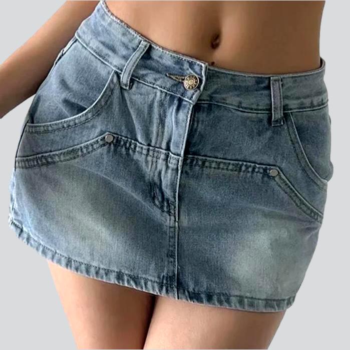 Make a statement with our ultra-short. medium-waisted. vintage-inspired denim skirt from the 2023 Summer Collection! This urban-trend staple is the perfect balance between contemporary fashion and '90s-inspired nostalgia. Crafted with premium quality denim. it features a unique distressed pattern and a reliable zipper and button duo.