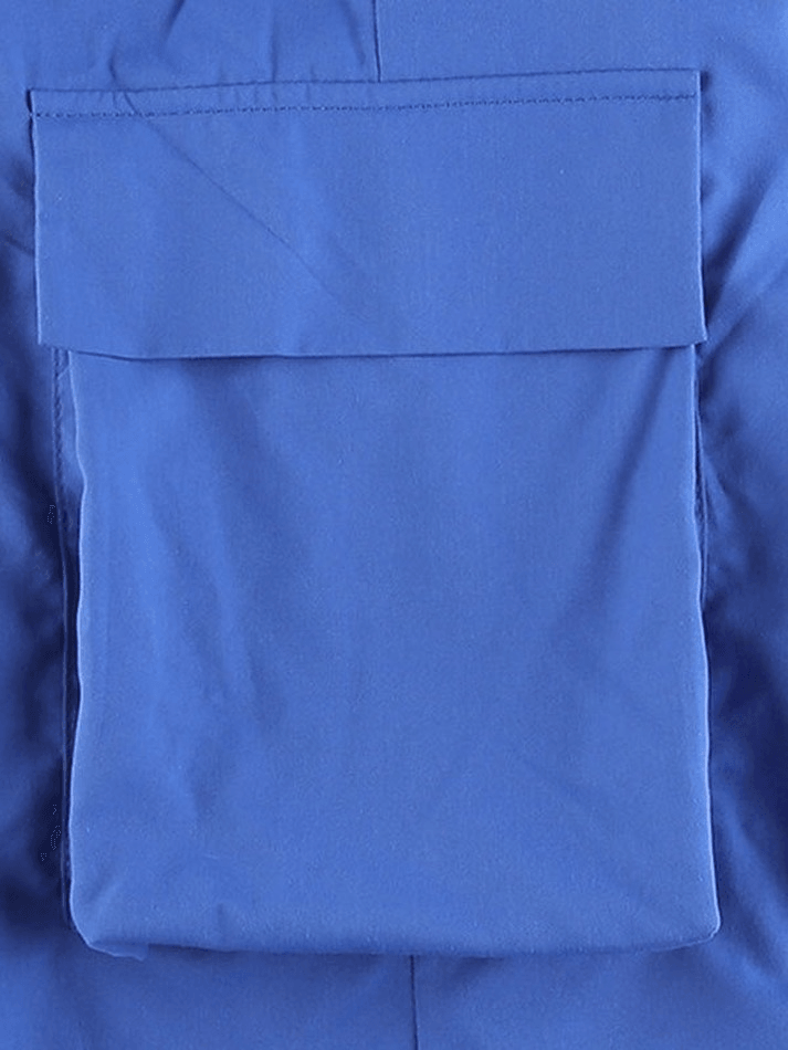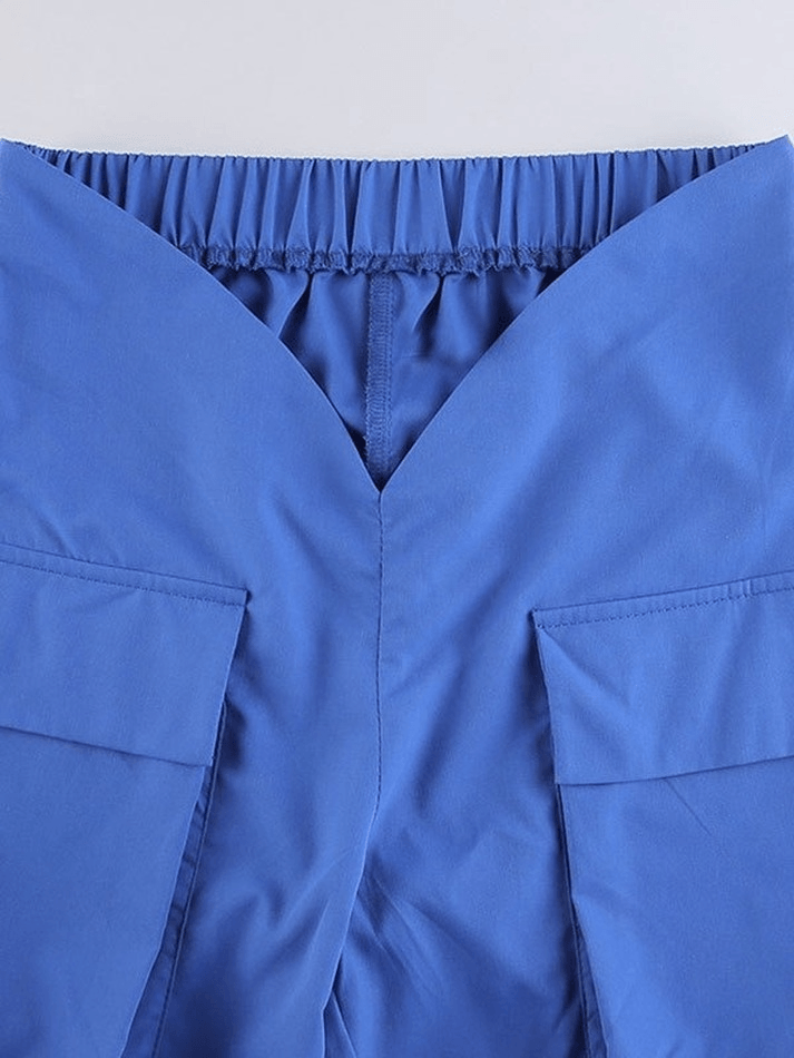 Description: Step up your fashion game with these trendy V Cut Pocket Cargo Pants. Designed for the stylish and adventurous. these pants feature a casual street style in a vibrant blue color. Made from a blend of polyester and spandex. they offer a comfortable and regular fit. The high rise waistline and cargo pockets with patched details add a touch of utility and uniqueness to your look. The V cut waistband and elasticated back waistband ensure a secure and flattering fit. Elevate your wardrobe with these fashion-forward cargo pants and make a bold statement wherever you go.