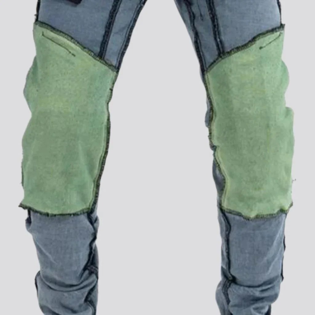 Discover the vintage moto style of 2023 Autumn Collection with our men's motorcycle jeans! Featuring slim. sanded. patchwork. protective knee-pads. mid-waist. zipper & button closure and kevlar details. these jeans elevate your wardrobe to a whole new level of coolness and comfort. Experience an irresistible mix of vintage charm and modern fashion with an edgy twist!