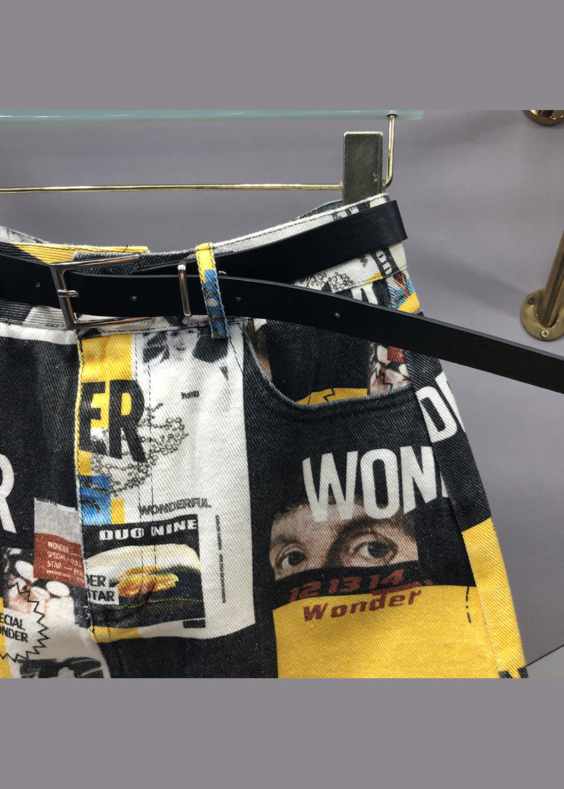 Women Yellow Street Graphic Pockets Patchwork Denim Skirt Summer Fabric: Denim Fabric Size & Fit: This garment fits true to size. Length: Size S measures 16.38"from waist to hem. Waist:Fitted - very fitted at natural waist Hip: Loosely Fitted. room for hips. Hand Wash Cold.