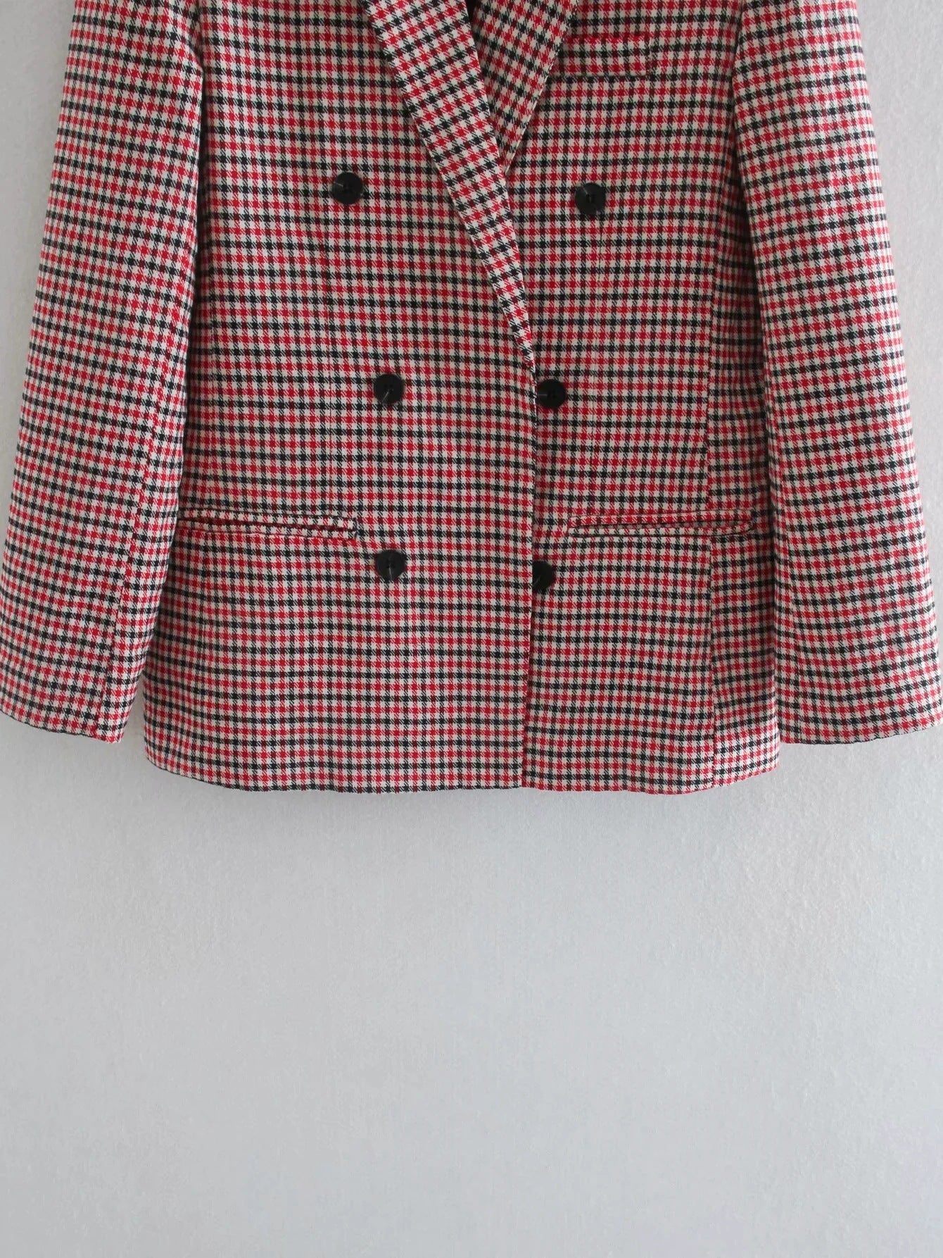 Blazers Lapel Check Pocket Button Blazer Ins Street