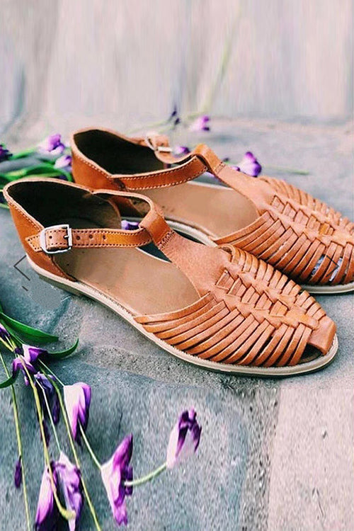 An all-time classic. our Flats are the perfect summer shoe that pair with almost anything. These shoes feature a natural tan leather fabric with braided detail on the top and a buckled ankle strap.