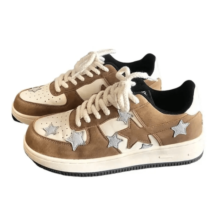 Elevate your streetstyle with these unique sneakers. The stars patchwork design in white and beige adds a touch of nostalgia and charm to your outfit. making these sneakers a must-have for Y2K aesthetic enthusiasts. Crafted from soft suede. they offer a luxurious touch and ultimate comfort for all-day wear.