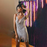 Beschreibung: Mit diesem funkelnden Minikleid aus Metall sehen Sie im Club garantiert großartig aus. Hergestellt aus einer Metallmischung. Die stylische, glitzernde Oberfläche besticht durch einen Wasserfallausschnitt mit Schulterträgern. Der tiefe Rückenausschnitt wird von gekreuzten Trägern und drapierten Details eingerahmt. Verspielte Seitenschlitze sorgen für einen...