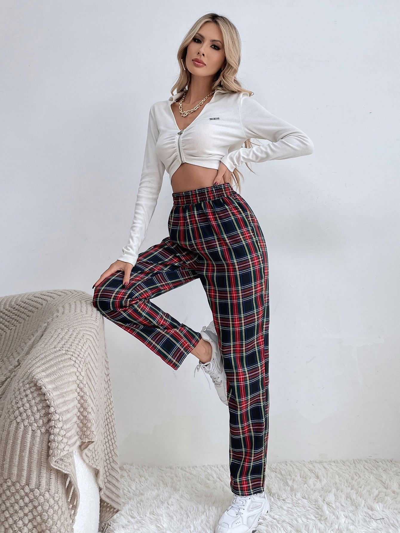 Plaid Tapered Sweatpants Sai Feel