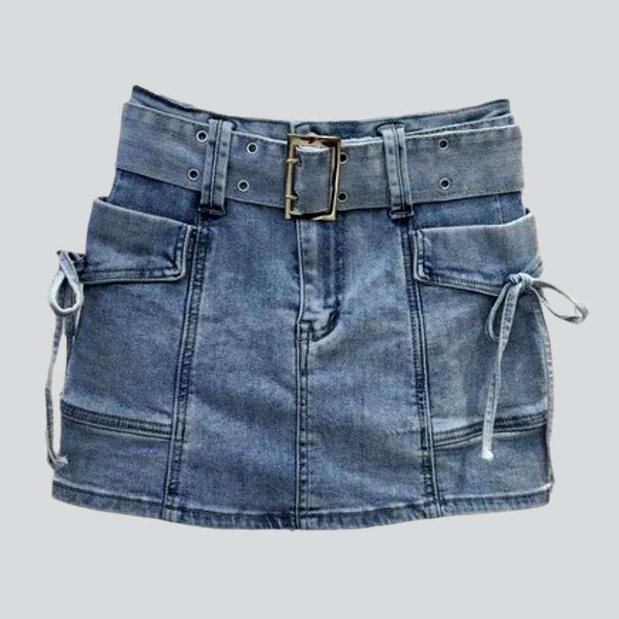 Willkommen zur Style-Revolution mit unserem Cargo -Jeansrock mit Bändern aus der Sommerkollektion 2023! Mit mittelhoher Taille und Stonewashed-Finish ist dieser Rock perfekt für einen mühelos coolen Look. Mit Reißverschluss und Knopfverschluss erhalten Sie Funktionalität und Flair zugleich.