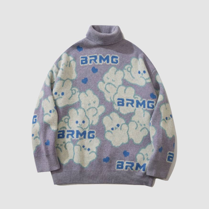 Niedlicher Rollkragenpullover mit Buchstaben & Kaninchen Muster