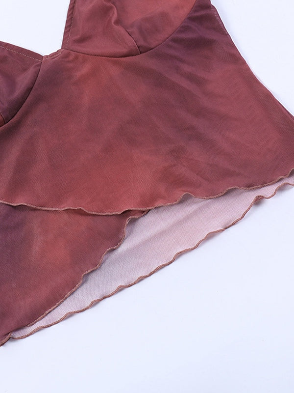 Beschreibung: Mesh-Materialien sind frisch und perfekt für die Sommersaison. Dieses sexy kleine Camisole-Top ist aus weichem, elastischem Mesh-Stoff gefertigt. Perfekt für den Sommerurlaub oder festliche Stimmung. Es hat eine aufgenähte Naht auf der Brust und einen überkreuzten Saum.