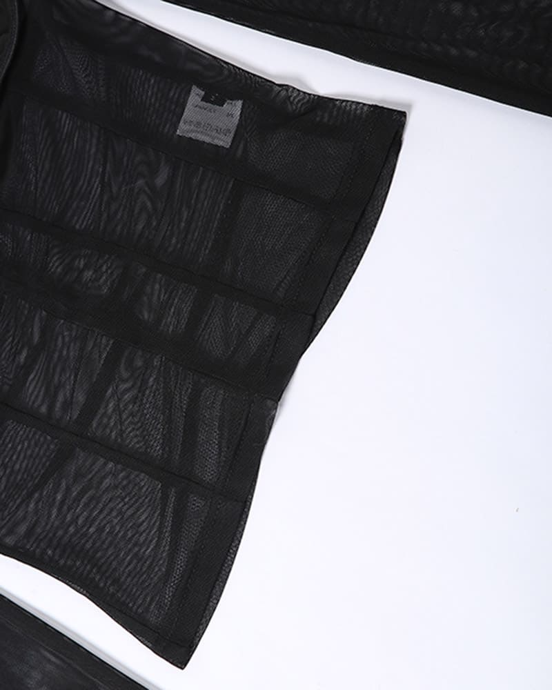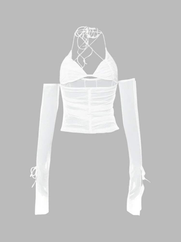 Details: Neckholder-Top aus Netzstoff mit passenden Handschuhen aus Netzstoff