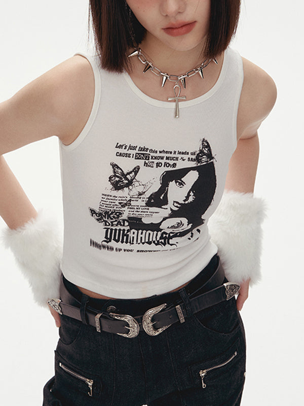 Beschreibung: Dieses Baby-Tanktop ist aus dehnbarem, weichem Rippenstoff gefertigt. Die kurz geschnittene, taillierte Silhouette ist mit einem Muster aus Buchstaben, Blumen, Schmetterlingen und modernen Mädchenelementen versehen.