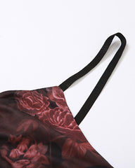 Details : Maxikleid mit Netzdetails und floralem Grafikdruck