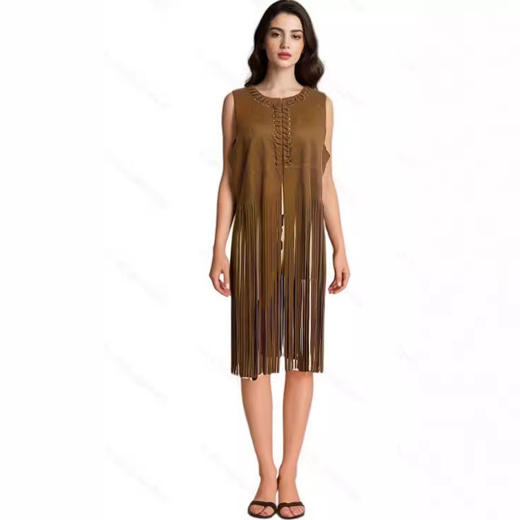 • Wenn Sie diese Fransenweste erhalten, kämmen Sie die Fransen bitte mit Ihren Fingern aus, um sie glatt zu machen.