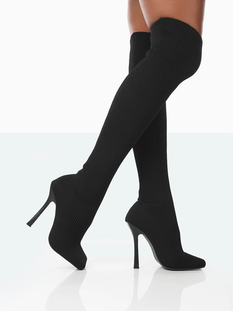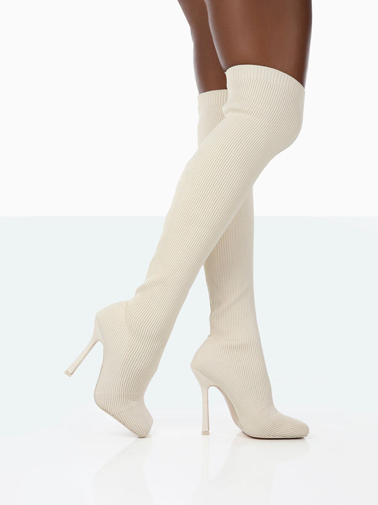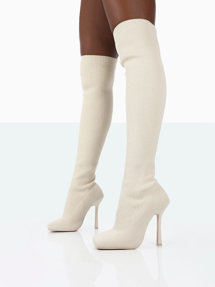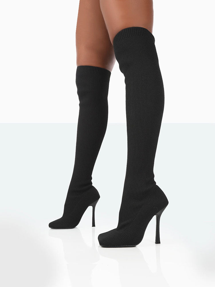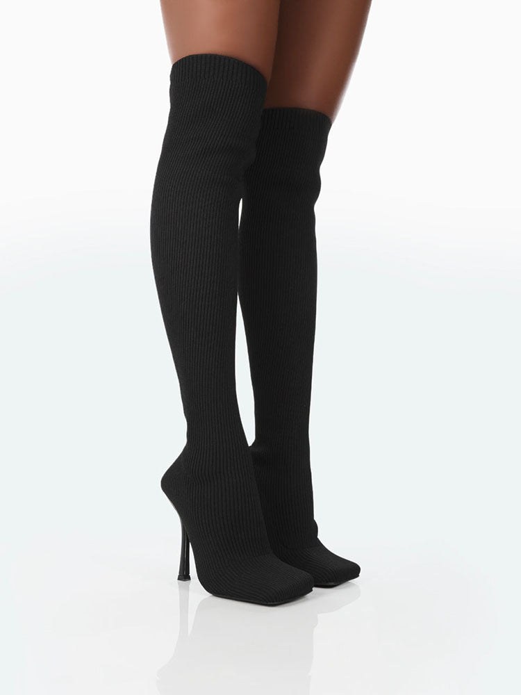 Gestrickter Overknee-Stiefel mit quadratischer Zehenpartie