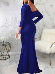 Merkmale: Lange Ärmel. Eine Schulter. Hohe Taille. Einfarbig. Figurbetontes Maxikleid.