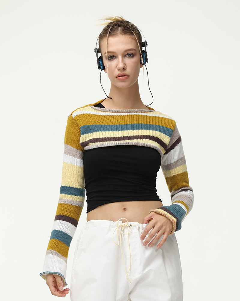 Details : Langärmliger Häkelbolero mit farblich passendem Muster