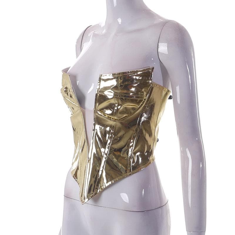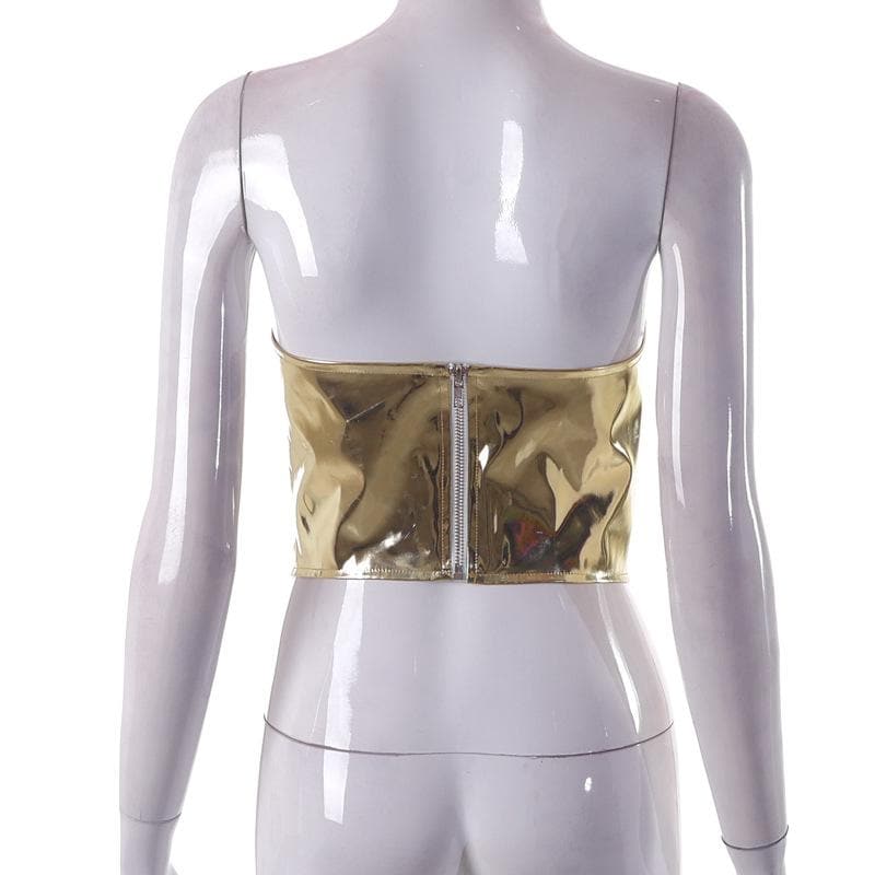 Metallic-Korsett-Tube-Top mit tiefem Ausschnitt, Reißverschluss und freiem Rücken