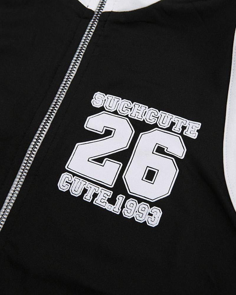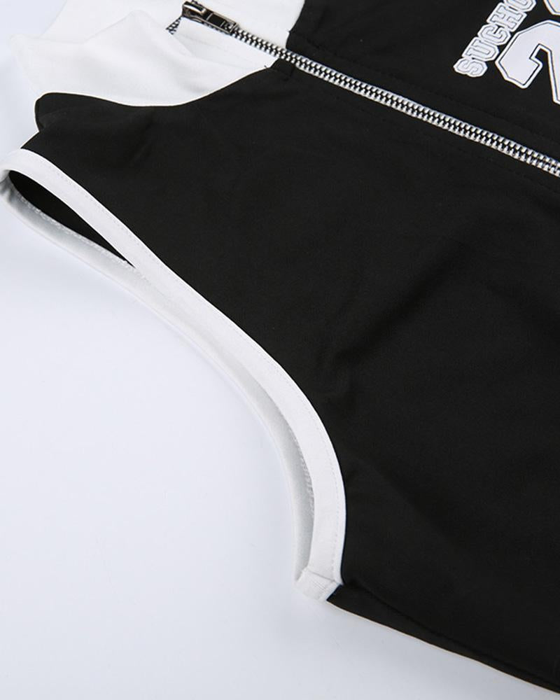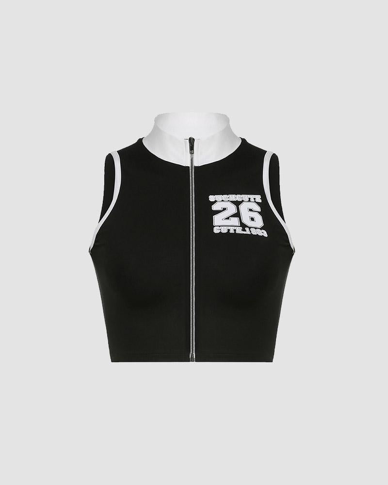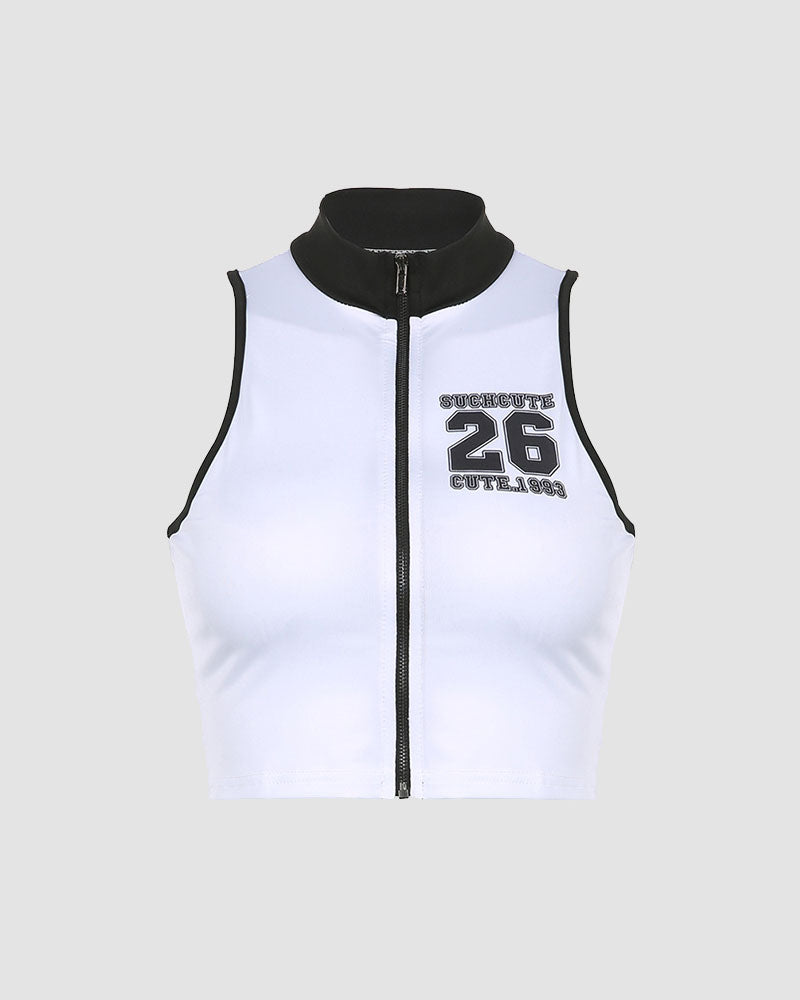 Details : Ärmelloses Cami-Top mit Nummernaufdruck auf der Vorderseite und Reißverschlussdesign