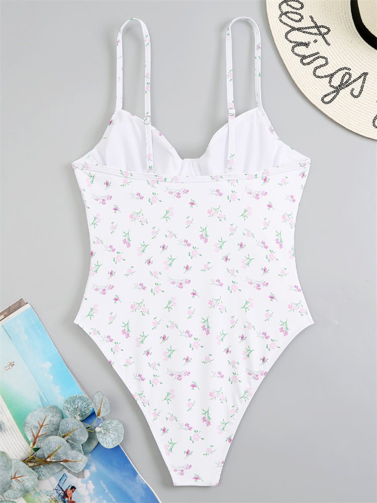 Olivgrüner, geblümter Bügel-Badeanzug - Weiß