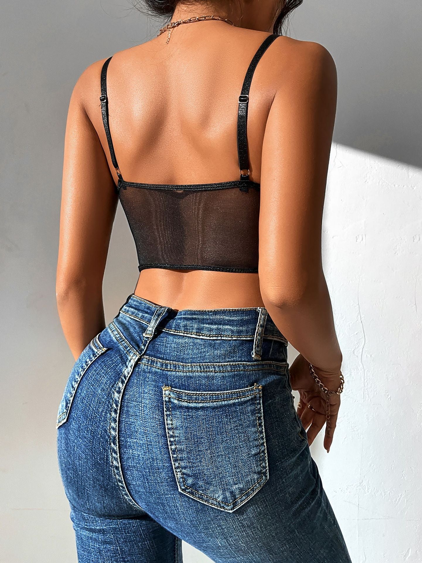 Das aufwendige Spitzenmuster verleiht einen Hauch von Eleganz und Weiblichkeit, während die verstellbaren Träger für eine perfekte Passform sorgen.