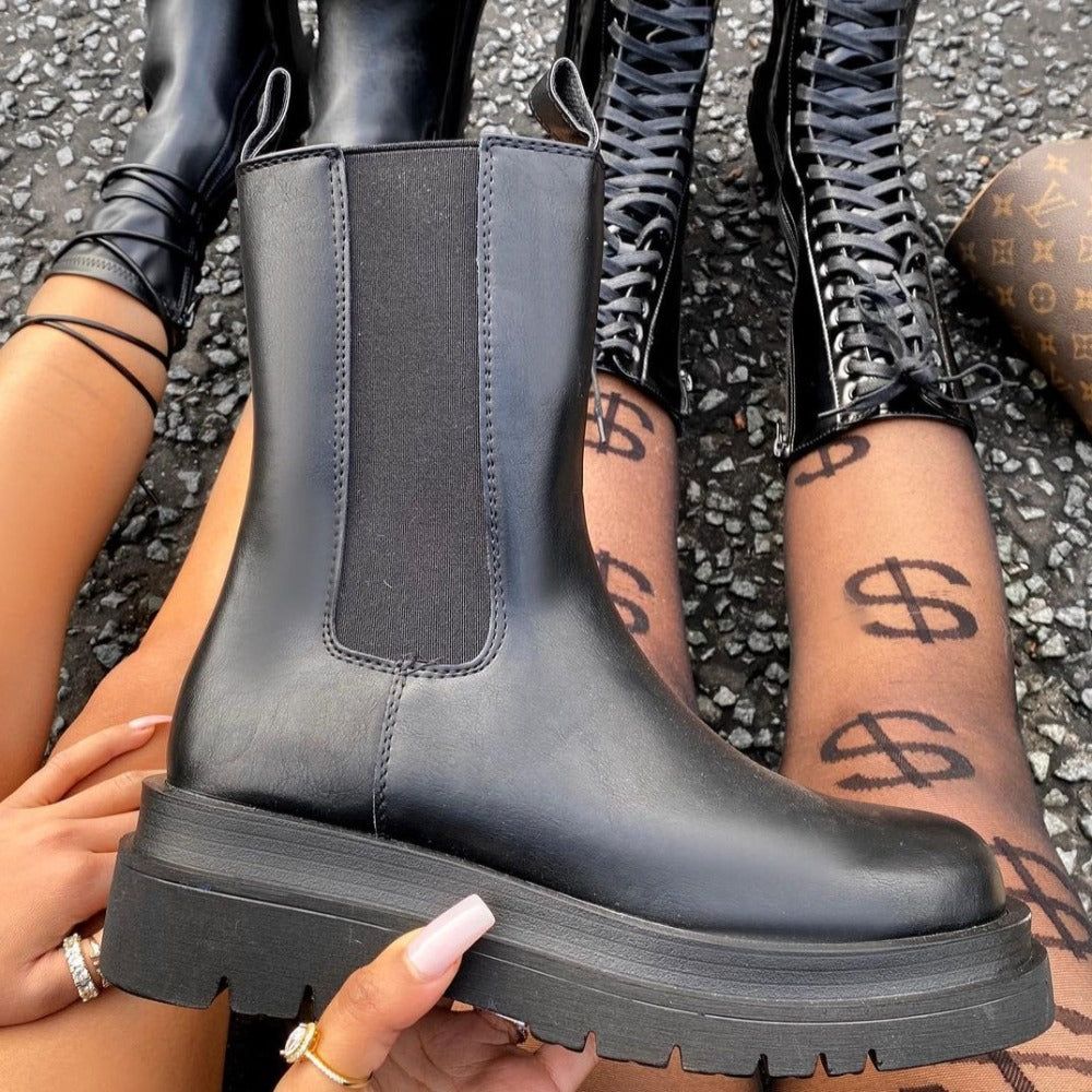 Folgen Sie dem Utilitarismus-Trend mit diesen halbhohen Stiefeln aus PU-Leder mit einer dicken Profilsohle.