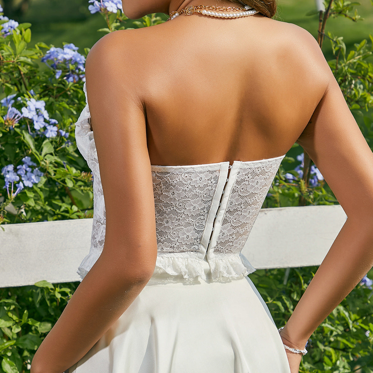 Details : Kurzes Spitzentop mit rosa Schleifendesign