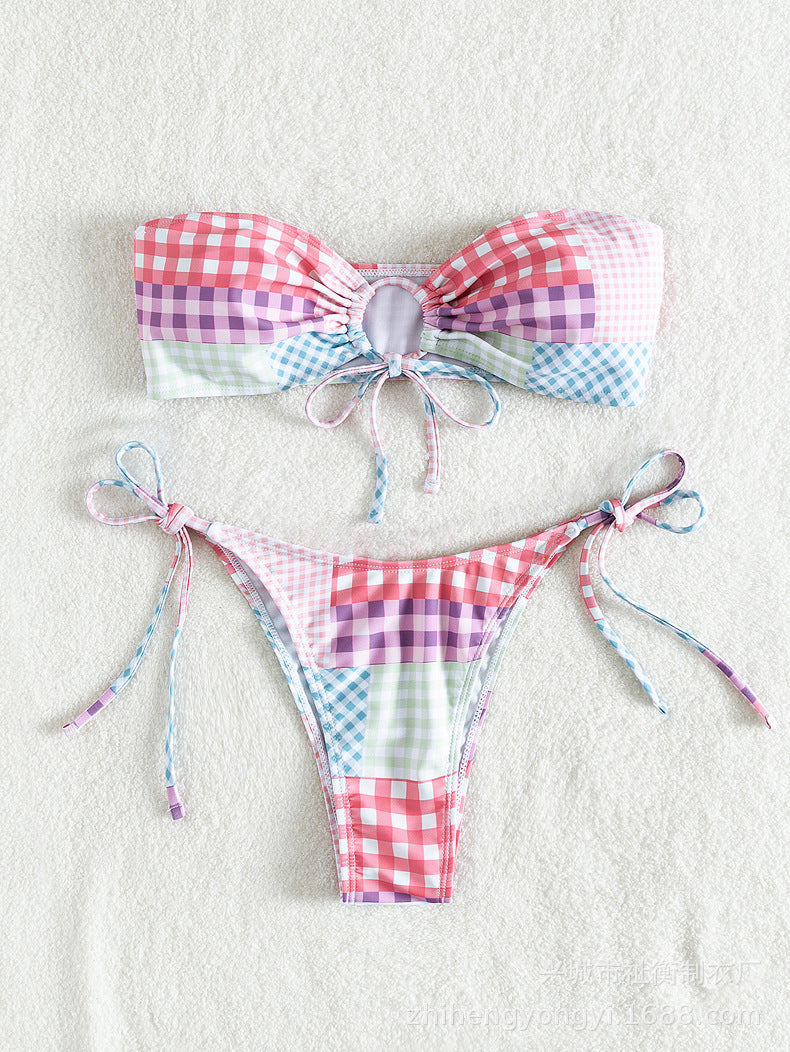 Besonderheit: Allover-Print. Pflanzenprint. Trägerlos. Tube-Top. Bandeau-Bralette. Seitlich zum Binden. Bikini. Bademode