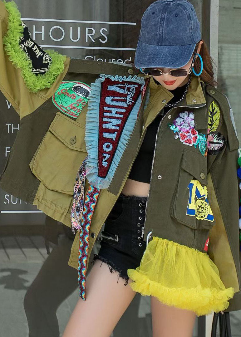 Plus Size Army Green Stehkragen Button Print Patchwork Herbst Denim Mantel Langarm Stoff: Baumwollmischung Größe & Passform: Passform: Dieses Kleidungsstück fällt der Größe entsprechend aus. Länge: Größe 3XL misst 22,62" von der Schulter bis zum Saum Brustumfang: Ideal für jede Körbchengröße. Taille: Lockere Passform. Bequemer Platz in der gesamten Körpermitte. Hüfte: Lockere Passform – Platz für die Hüften. Kalte Handwäsche.