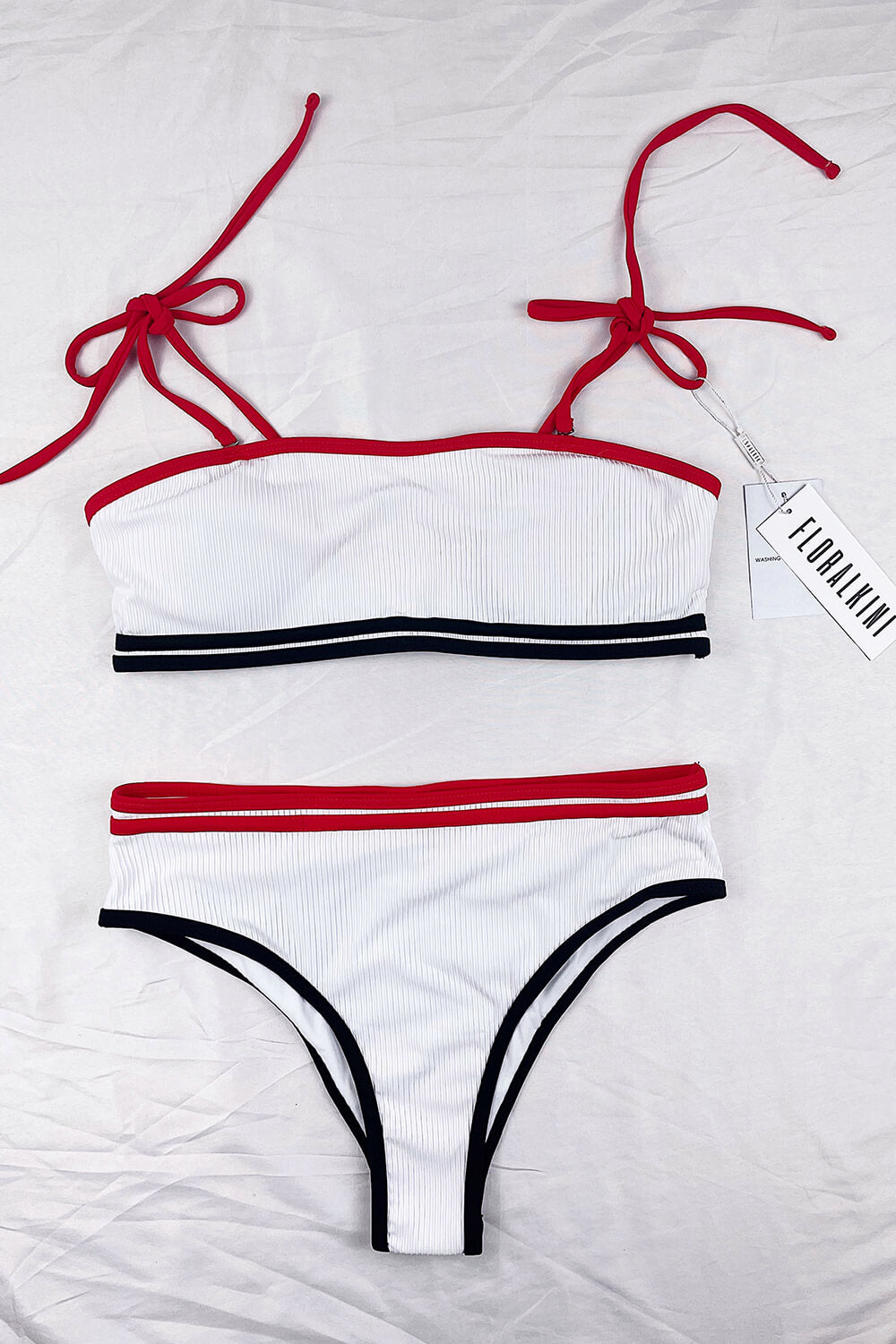 Rot-schwarz gestreifte, gerippte Bikinihose mit hoher Taille
