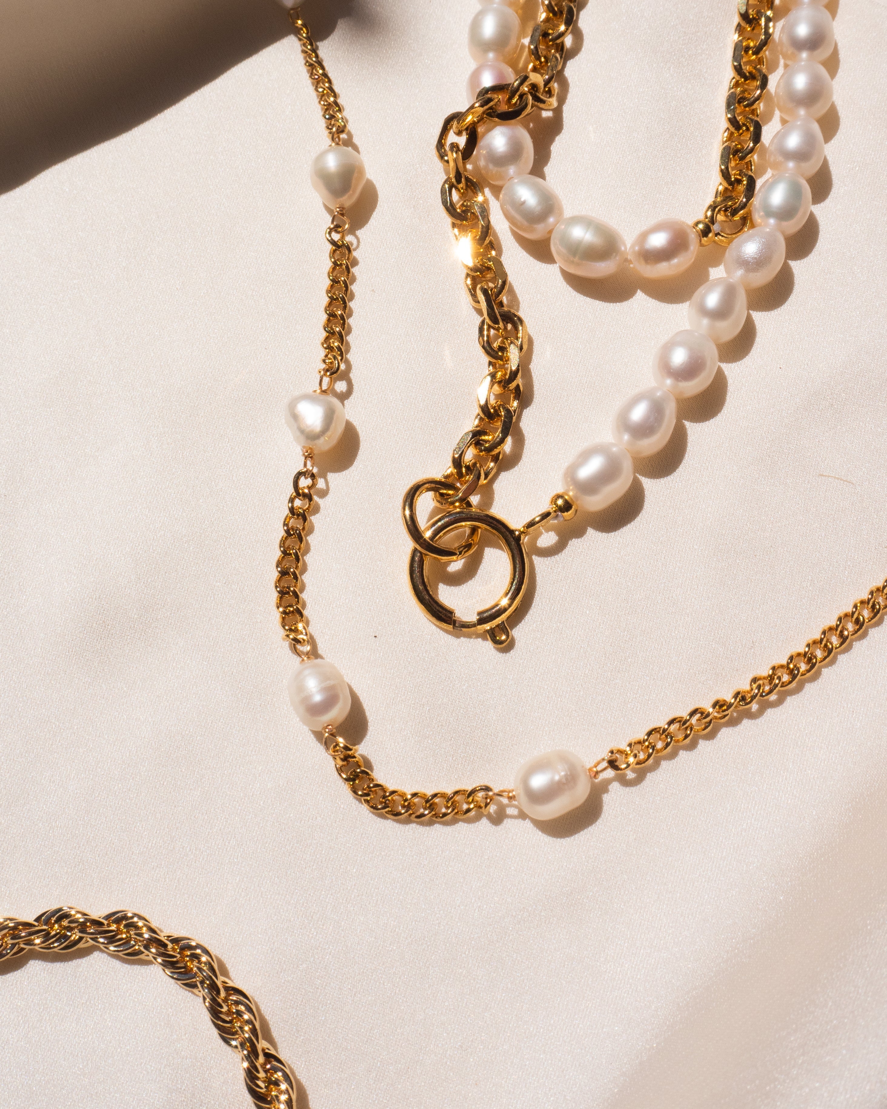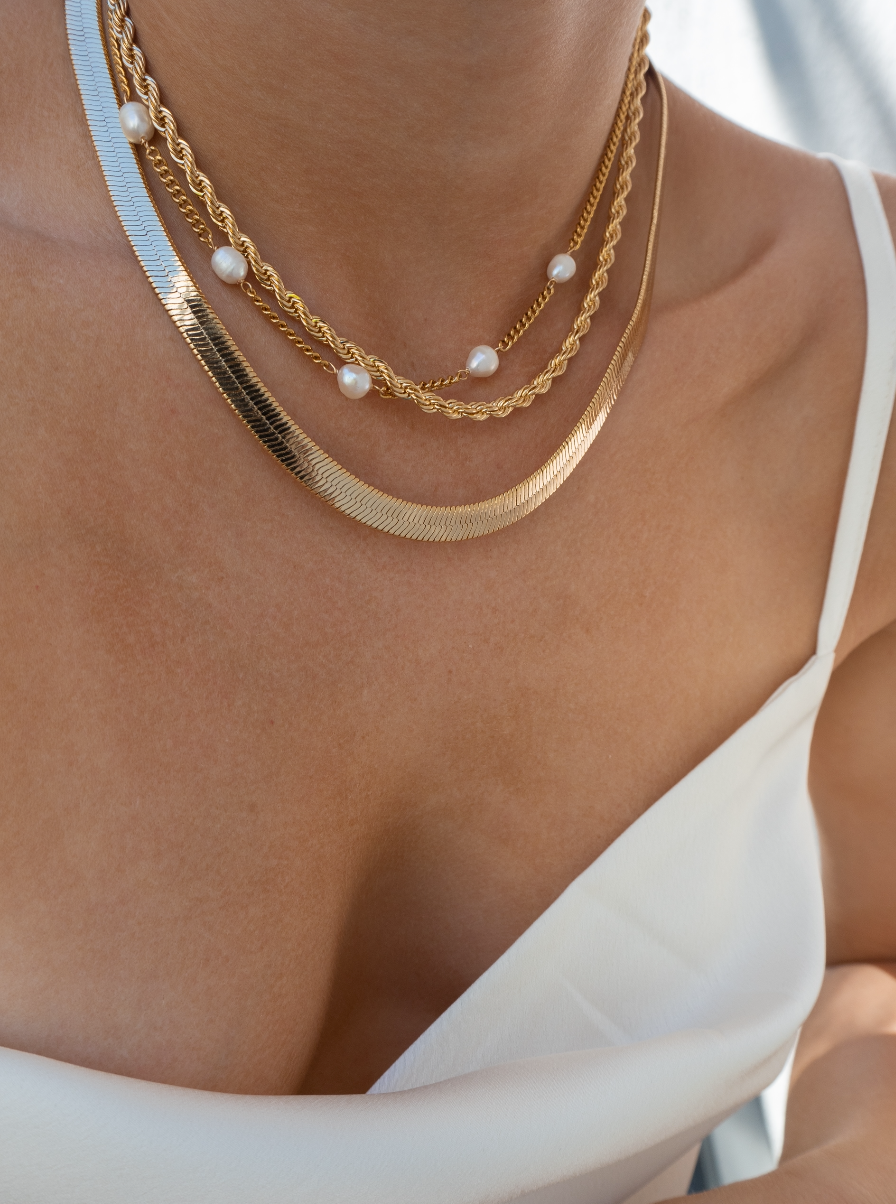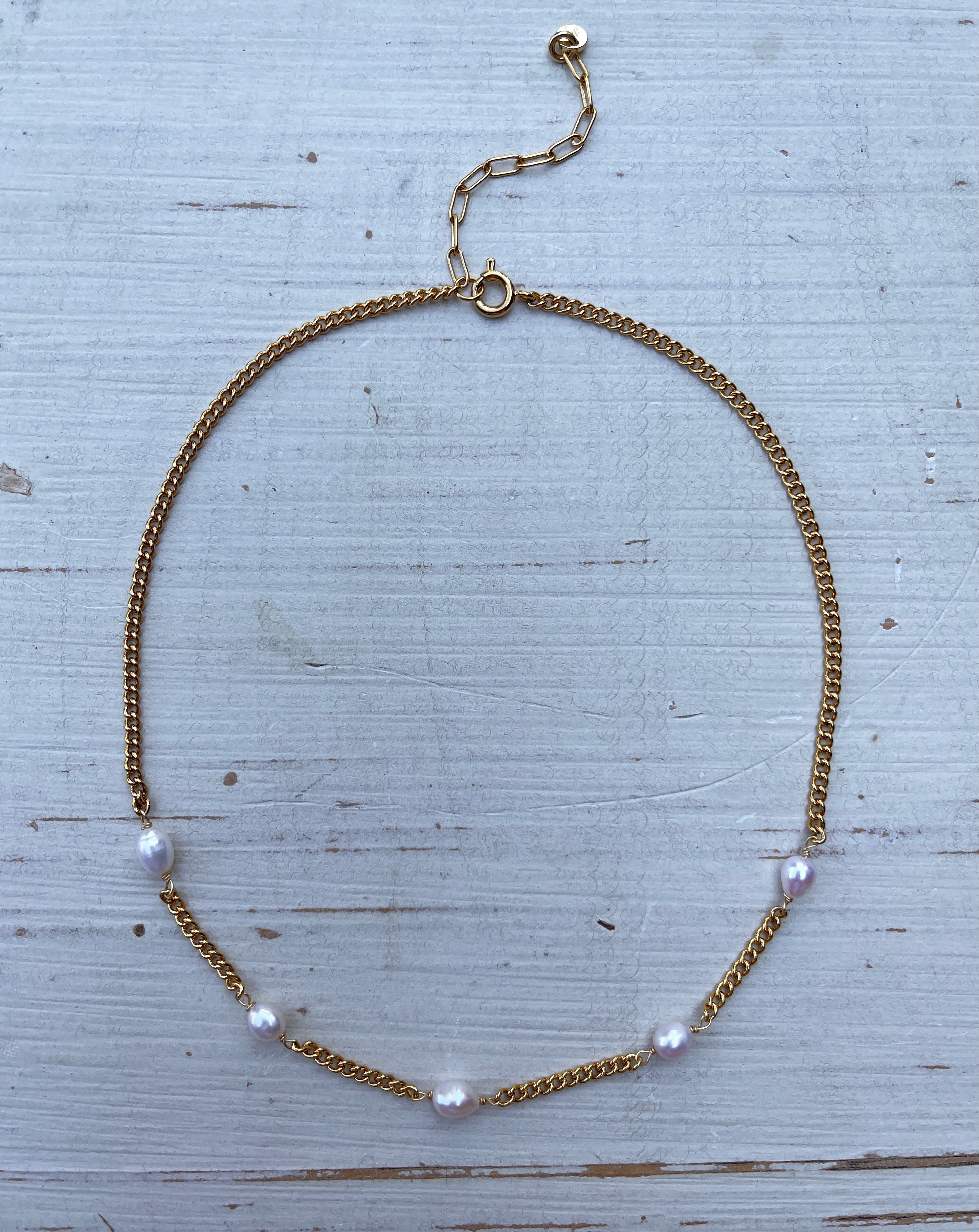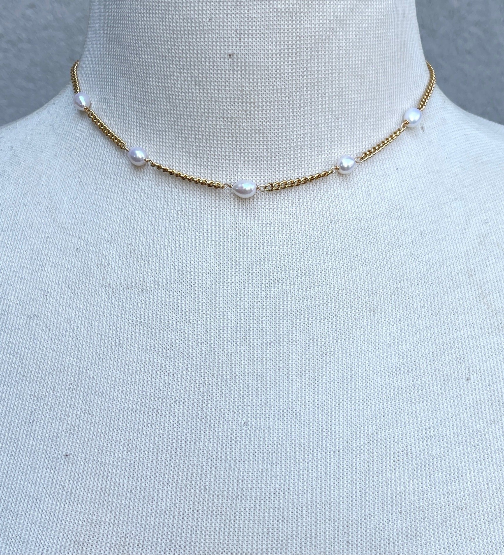 Halsband mit Süßwasserperlen und Goldkette